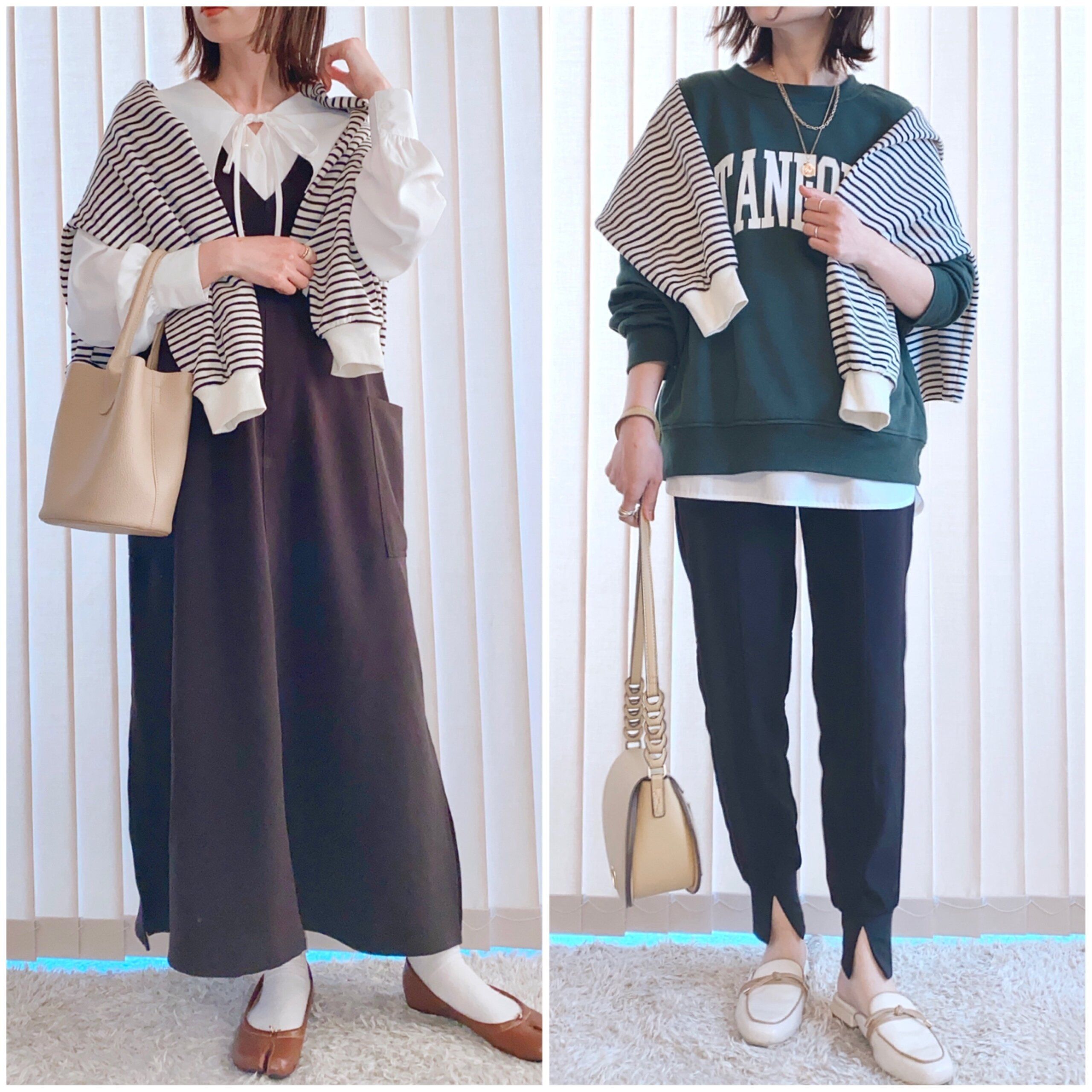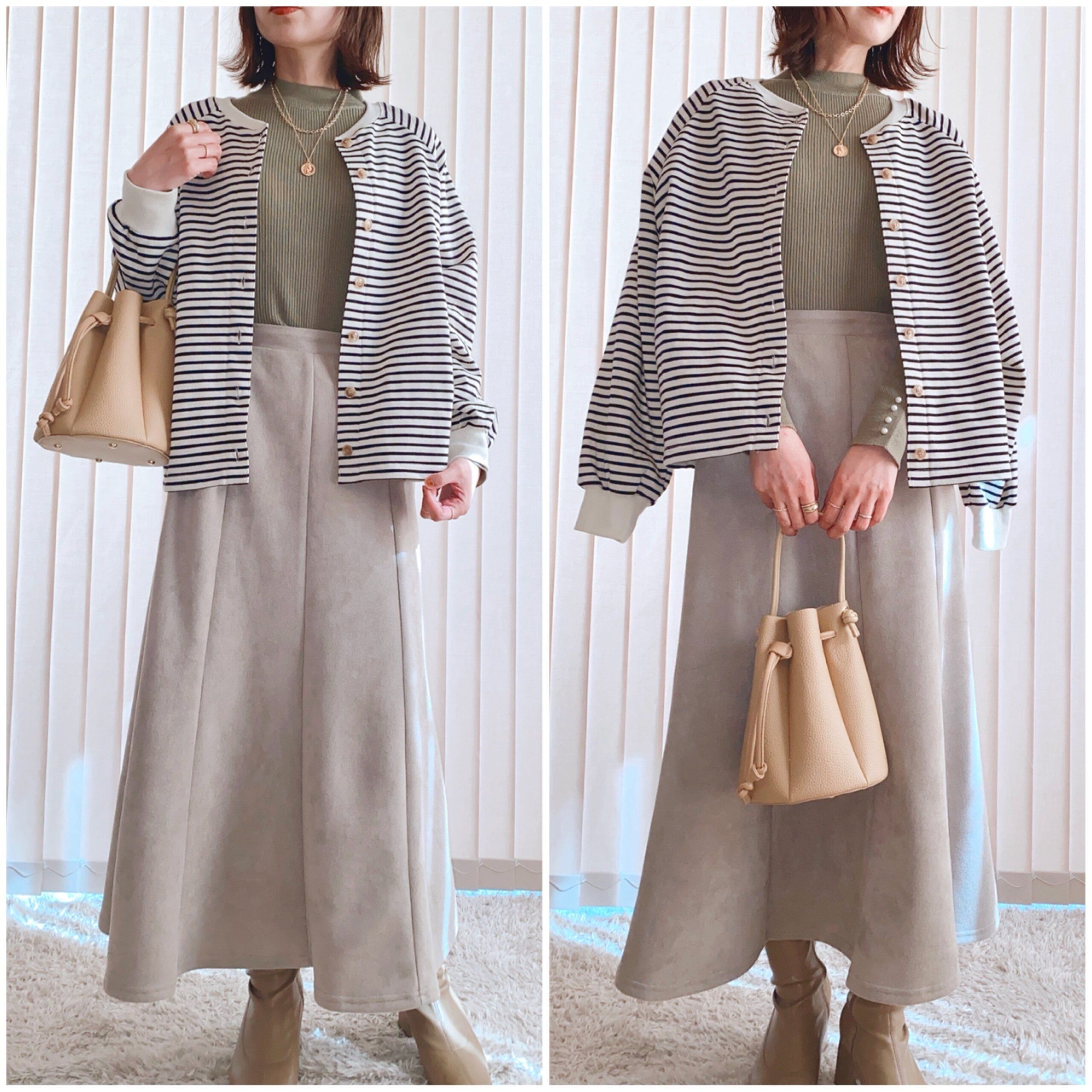 今回はボーダーカーディガンを使った着回しコーディネートをご紹介しました。