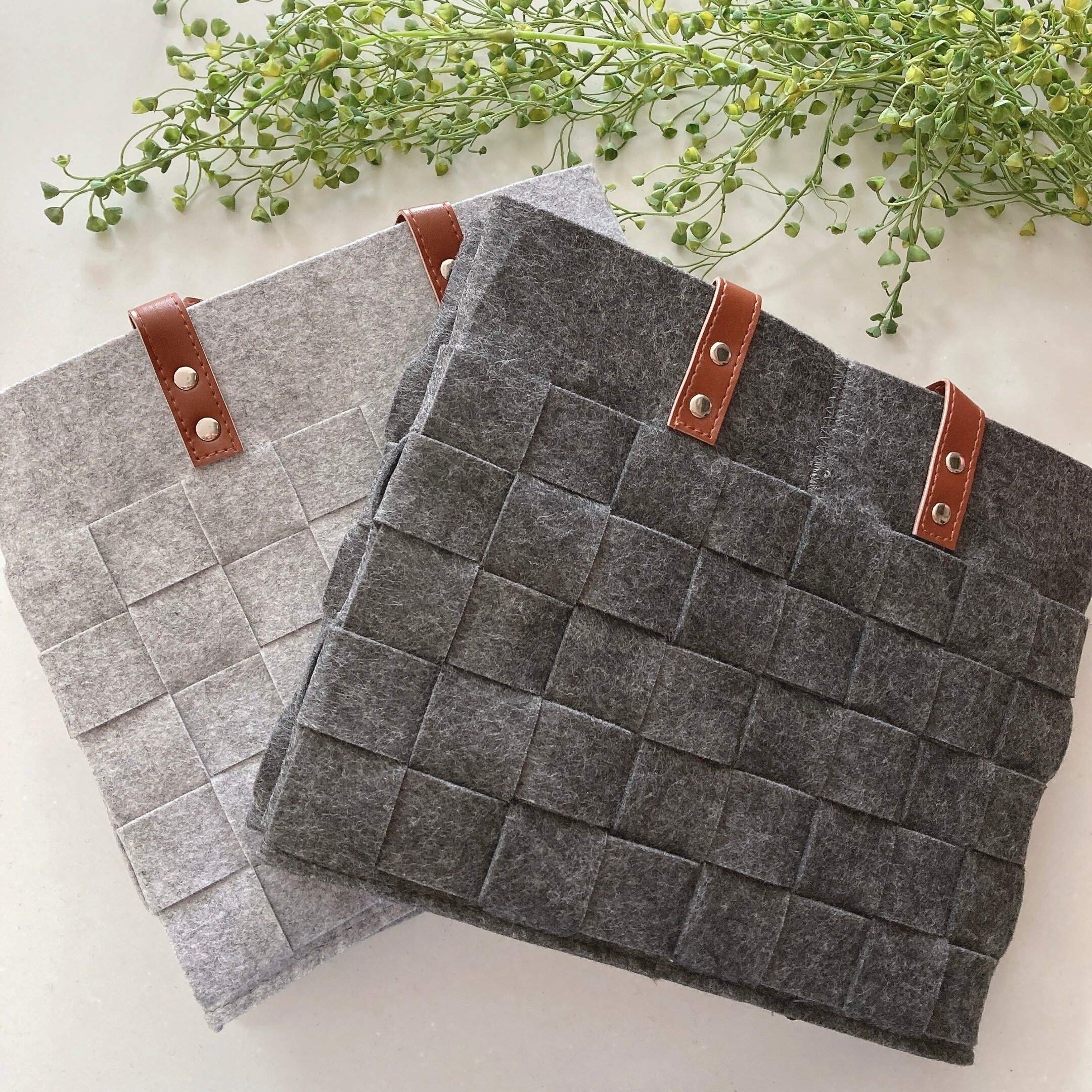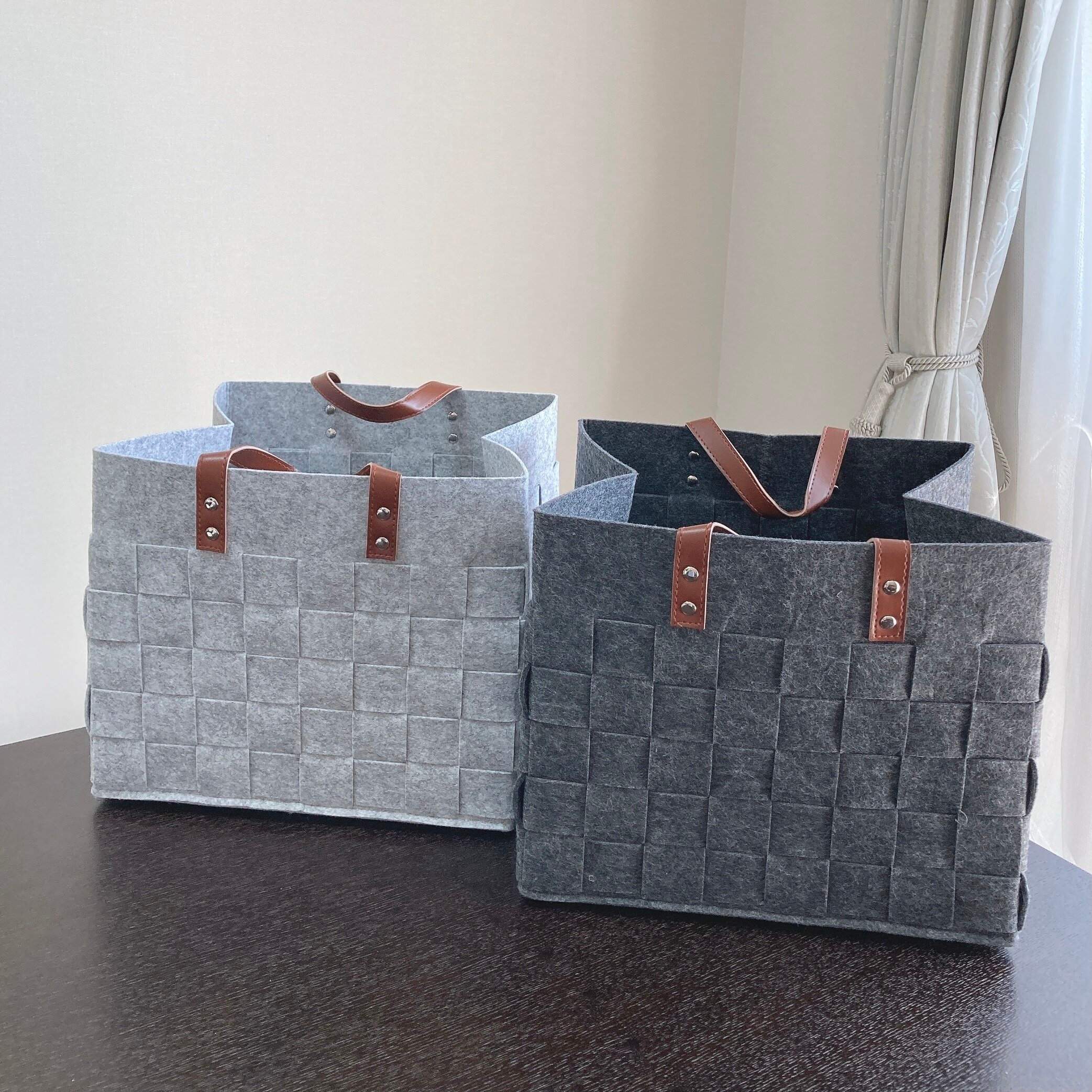 <商品名>編み込みフェルト収納(グレー/ダークグレー)