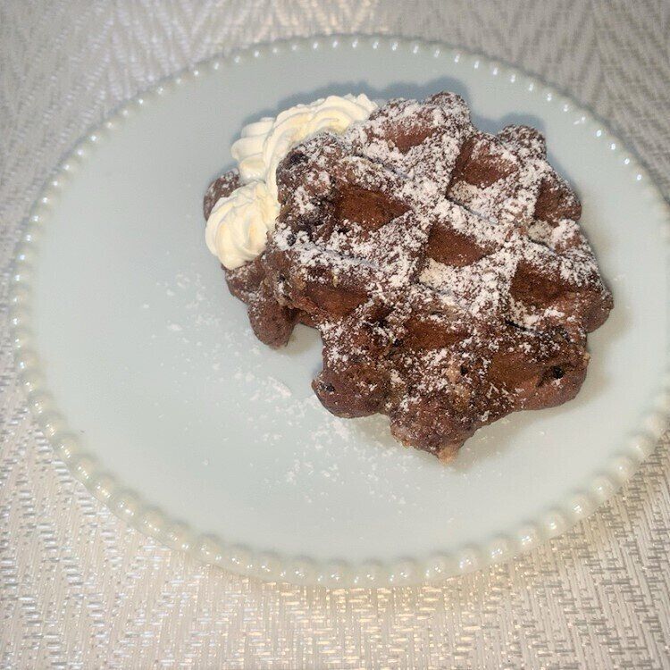 ココアパウダーが生地に入った、見た目は黒めなベルギーワッフルです。