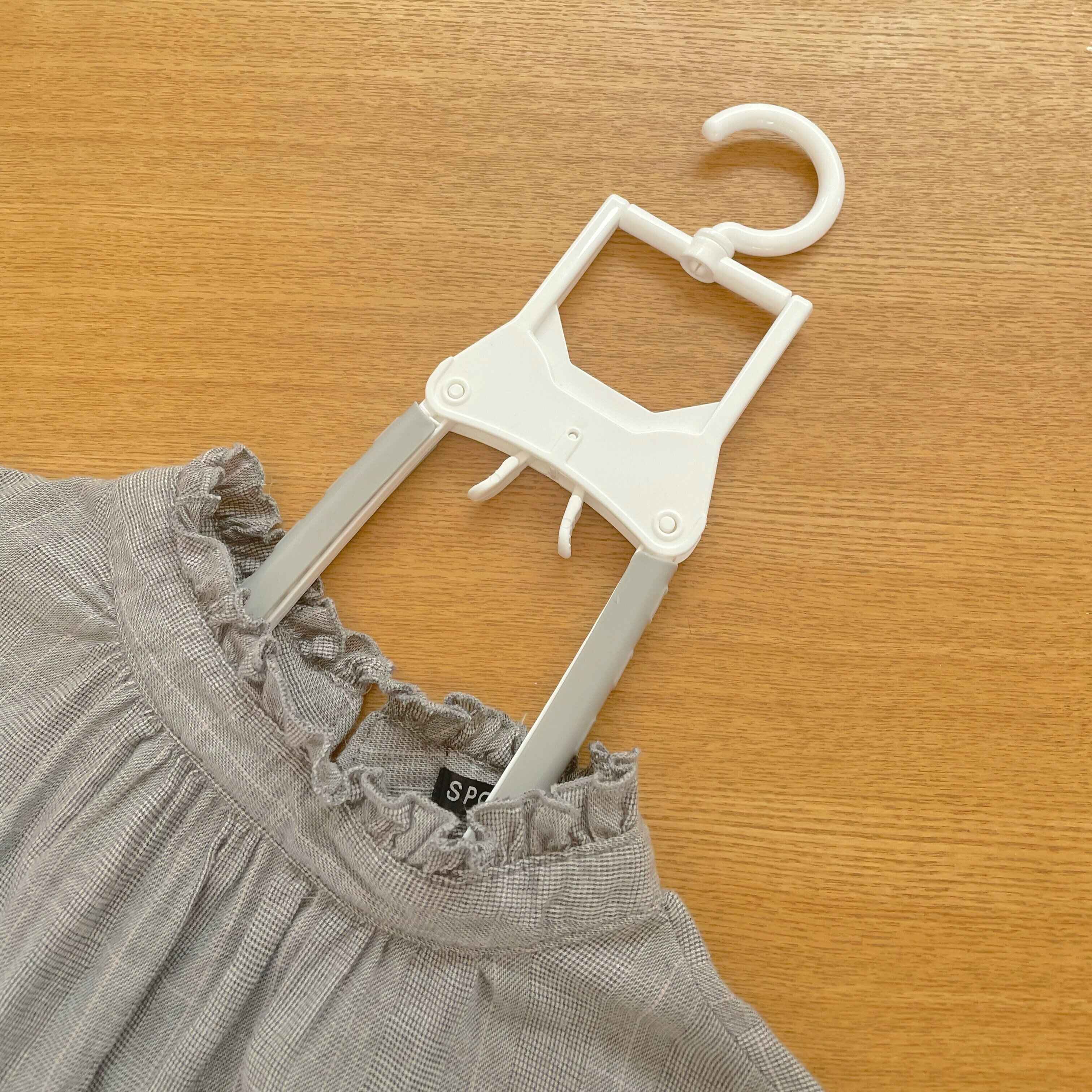 このハンガーは折りたためるのでスーツケースに入れることも可能。自宅で使ってもよいですが、出張や旅行などにも持っていけるコンパクトサイズなので便利ですよ!