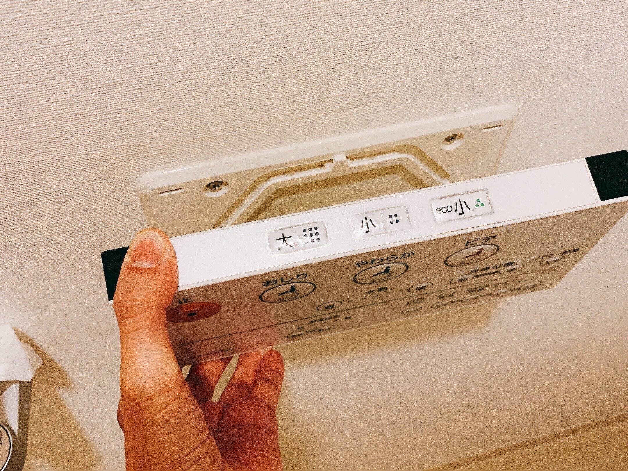 ウォシュレットスイッチのパネルの上側にホコリが溜まるとサッと拭かれるかたは多いと思います。しかし、スイッチパネルは外れます。電池交換が必要になるので、基本的には外れるように設置されています。(メーカーによって異なるので、必ず取扱説明書をお読みください)