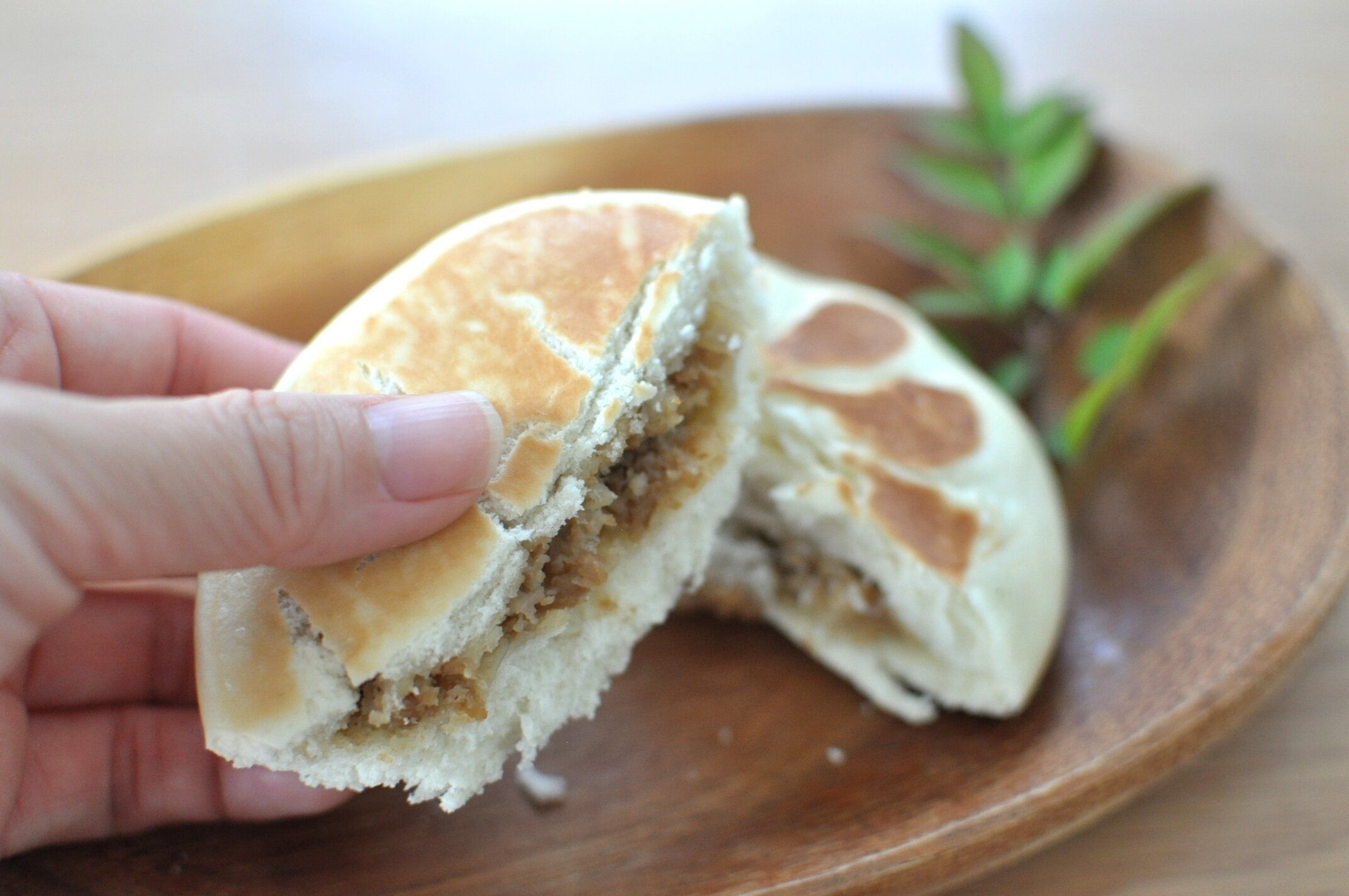 表面のカリカリ感が、いつもの肉まんとひと味違って美味しいです。
