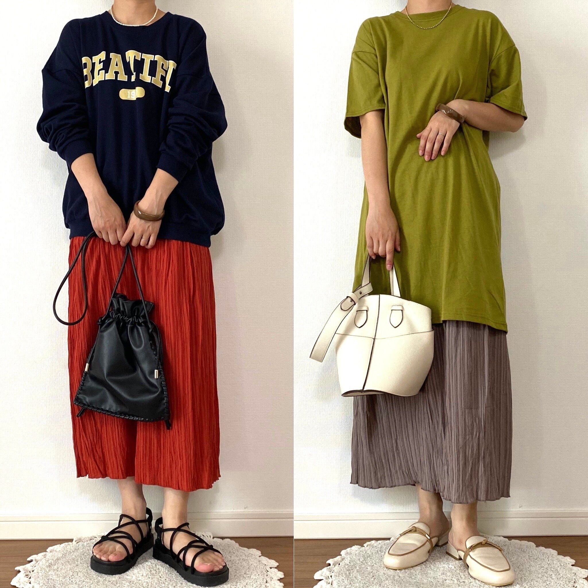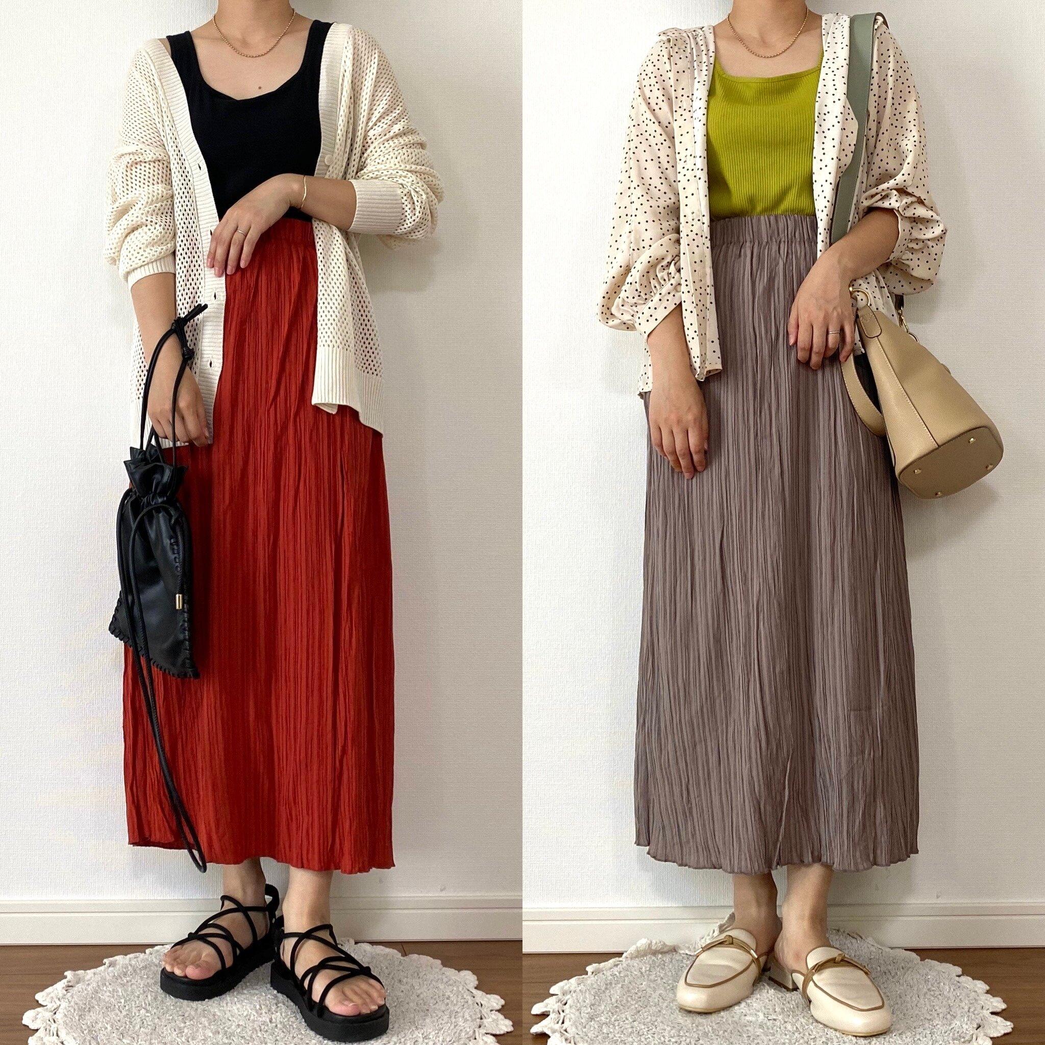 身体のラインを拾うデザインではないので、体型カバーしながらスッキリとした今っぽいシルエットを作り出してくれる優秀スカート!