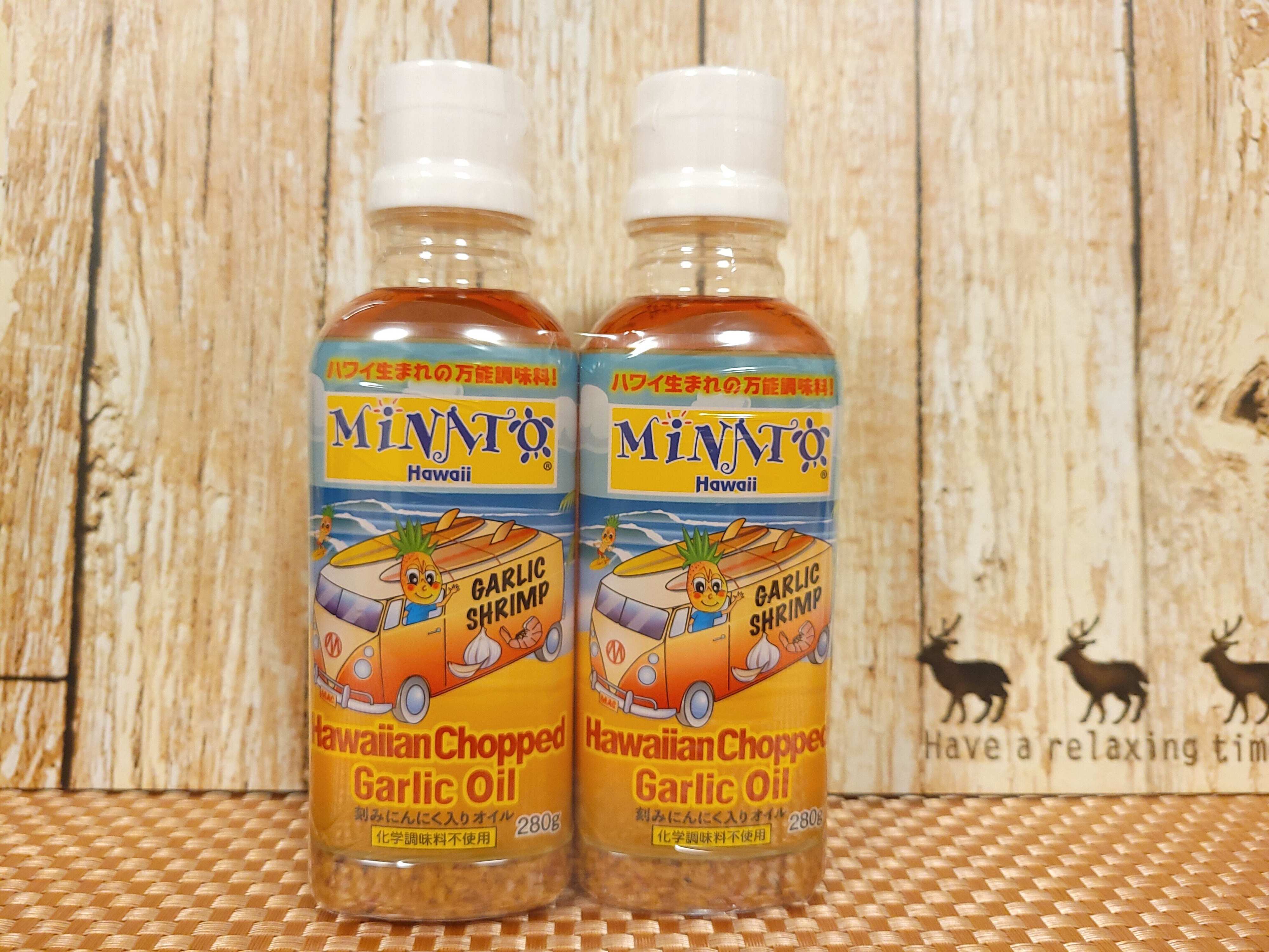 ハワイ土産でも人気のミナトハワイ「ハワイアンスタイルシュリンプマリネード」は、日本でも「ハワイアンチョップドガーリックオイル」としてコストコや成城石井などで販売されSNSでも話題の商品ですが、今年4月から日本のコストコで使い勝手のよい280gのミニボトル2本パックで販売が始まりました。今回は税込み980円で購入しました。