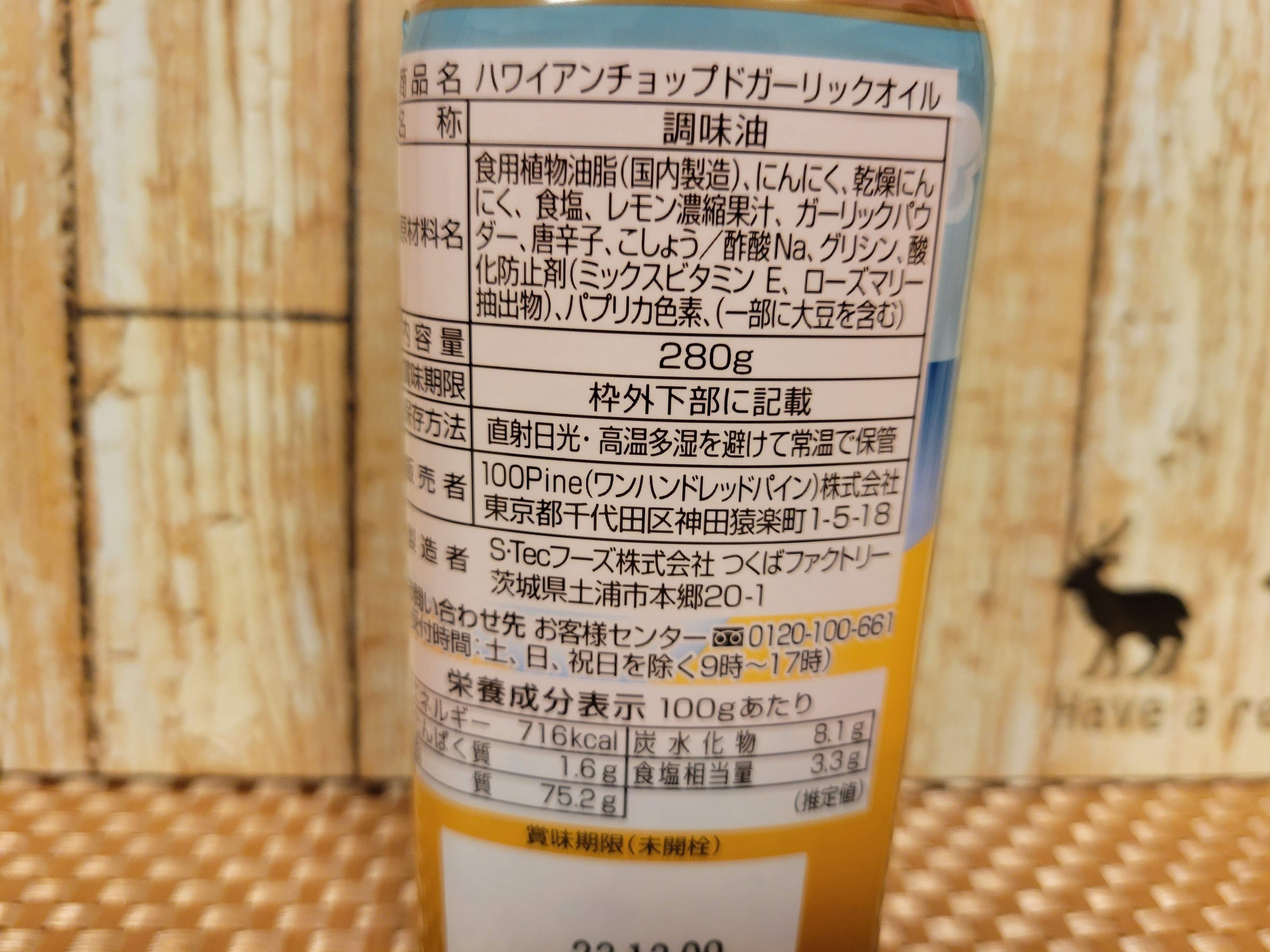 ボトルラベルには、ガーリックシュリンプとガーリック枝豆、ペペロンチーノの作り方も記載されています。ガーリックシュリンプは、海老とハワイアンチョップドガーリックオイルだけで作ることができます。