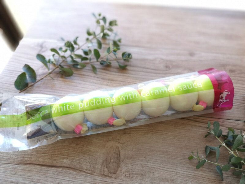 一見すると見た目が白いプリンにそっくりなので、見逃してしまいそうになりましたが、パッケージのラインが通常よりも少し青いグリーンで爽やかです。