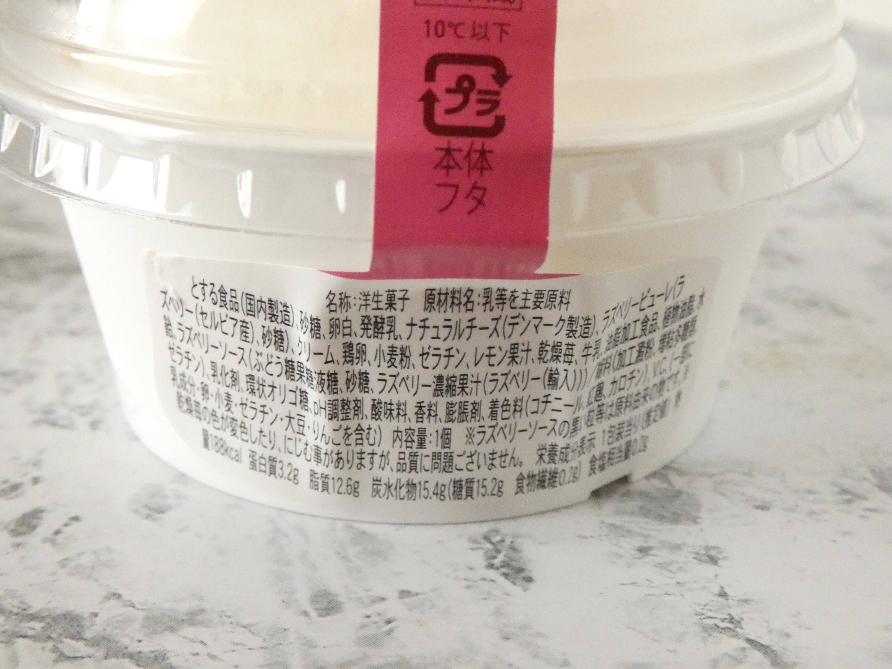チーズクリームの中にはスポンジケーキとラズベリーソースが入って、上にはドライいちごが散りばめられています。