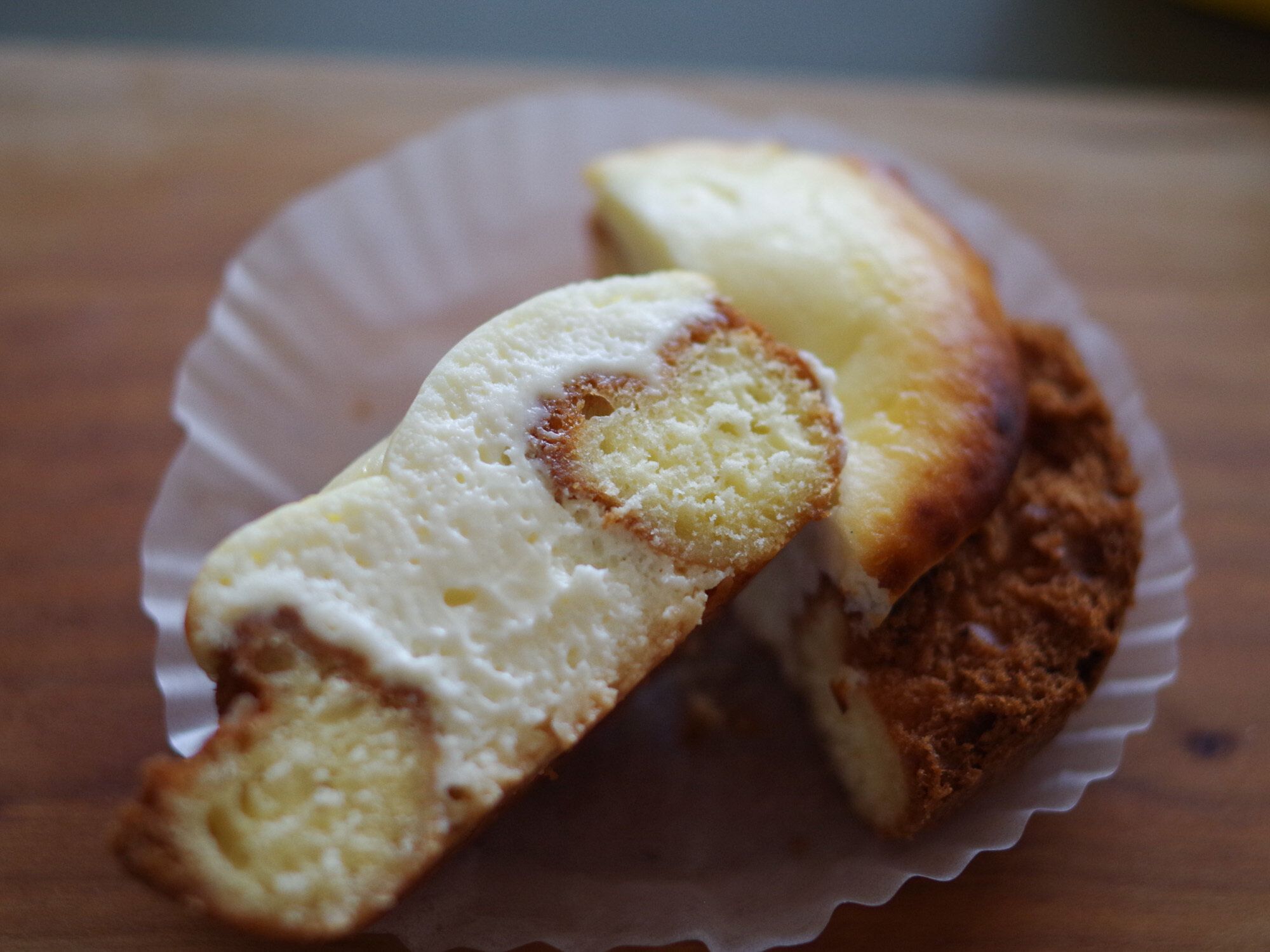 中を見てみると、中央部分にびっしりチーズタルトのフィリングが入っていますね!なんだか幸せ。BAKE『CHEESE TART』で楽しめるカリカリとしたタルト生地と違って、ドーナツ生地が使われ、ちょっぴりふわふわ。食べ応えがありました。