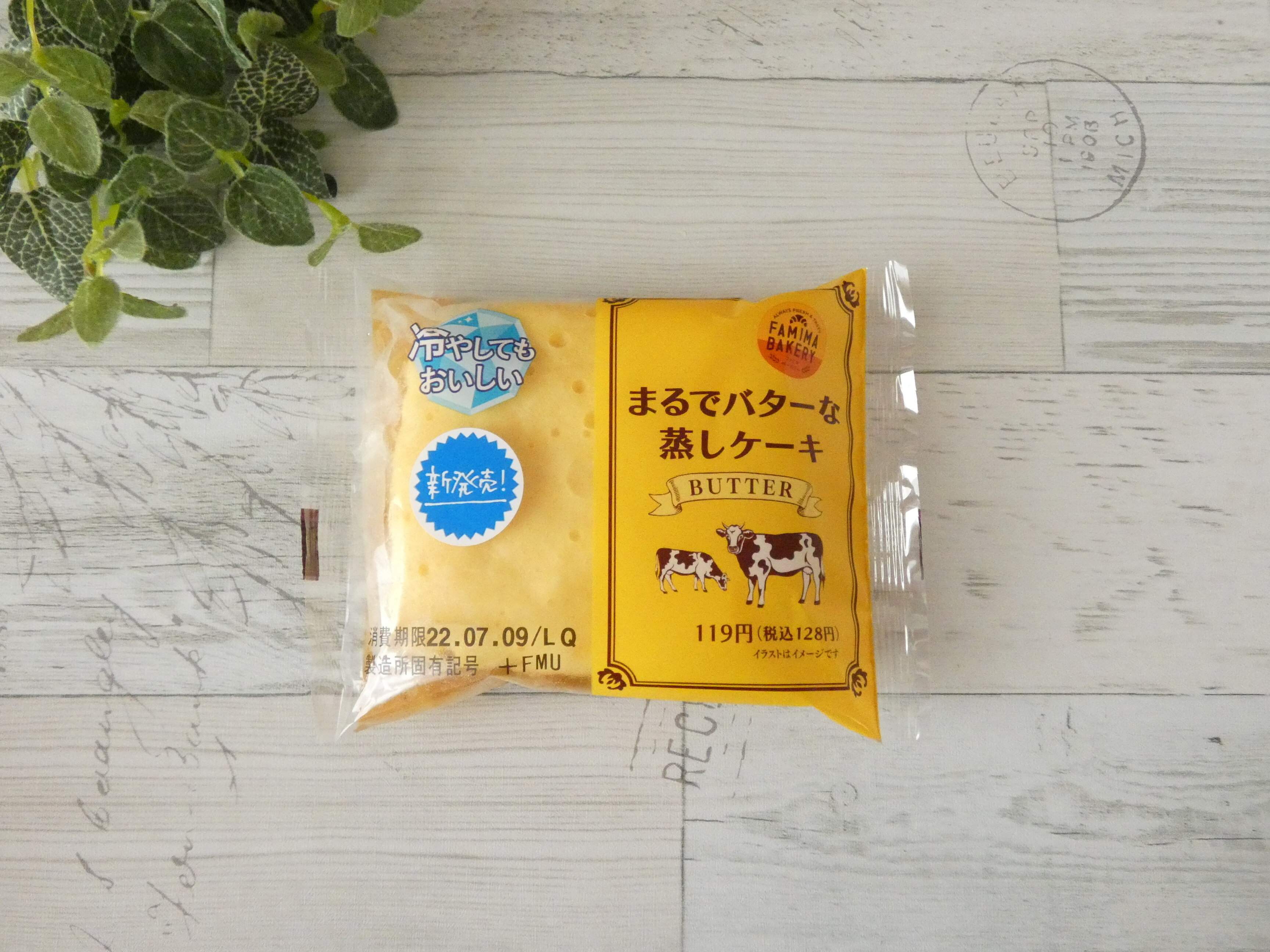 ファミリーマート新発売「まるでバターな蒸しケーキ」は128円。