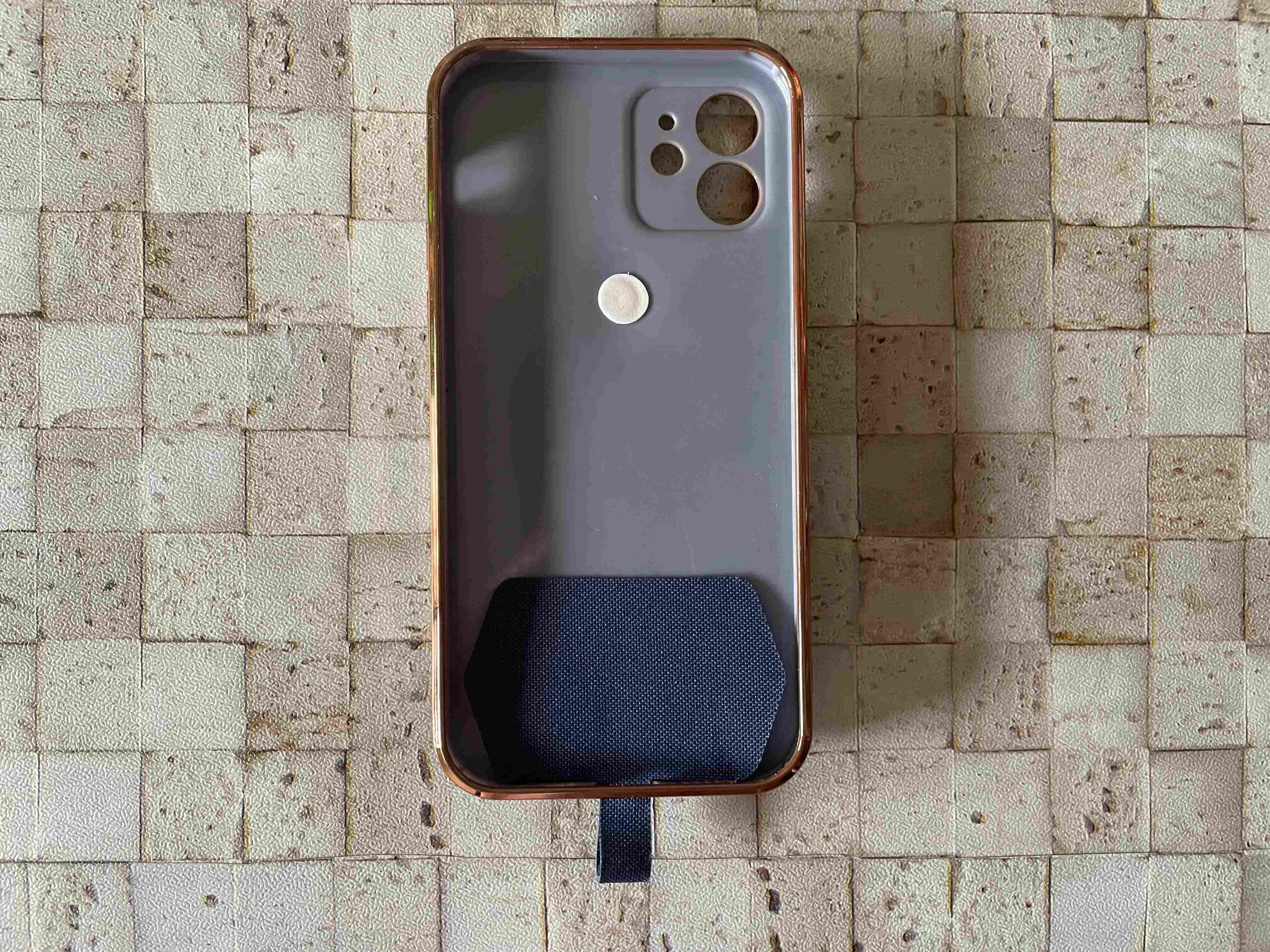 スマホケースを外し、充電ケーブル用の穴からカードの輪を通して出すように、カードをセットします。(穴は1cm以上必要です)