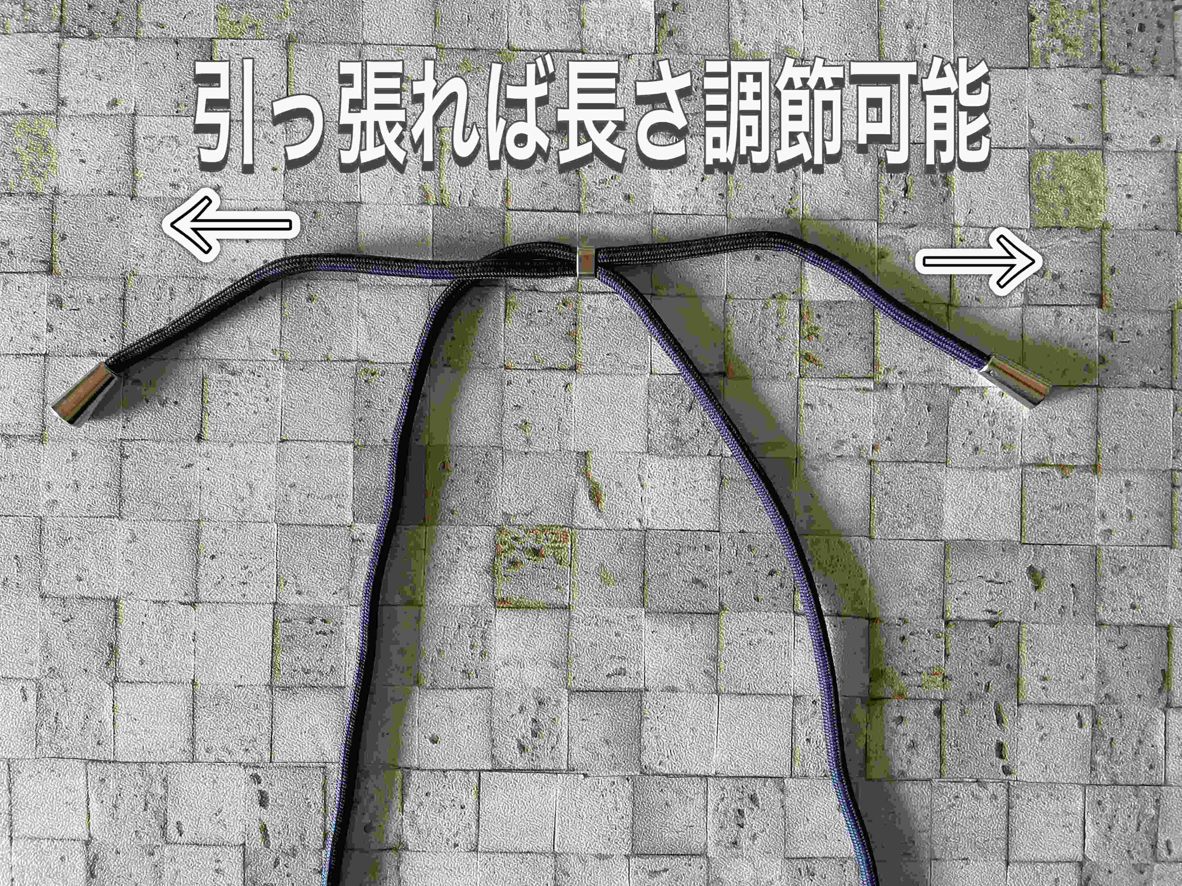 引っ張るだけで調節でき、調節は無段階なので好きな長さにできますよ。