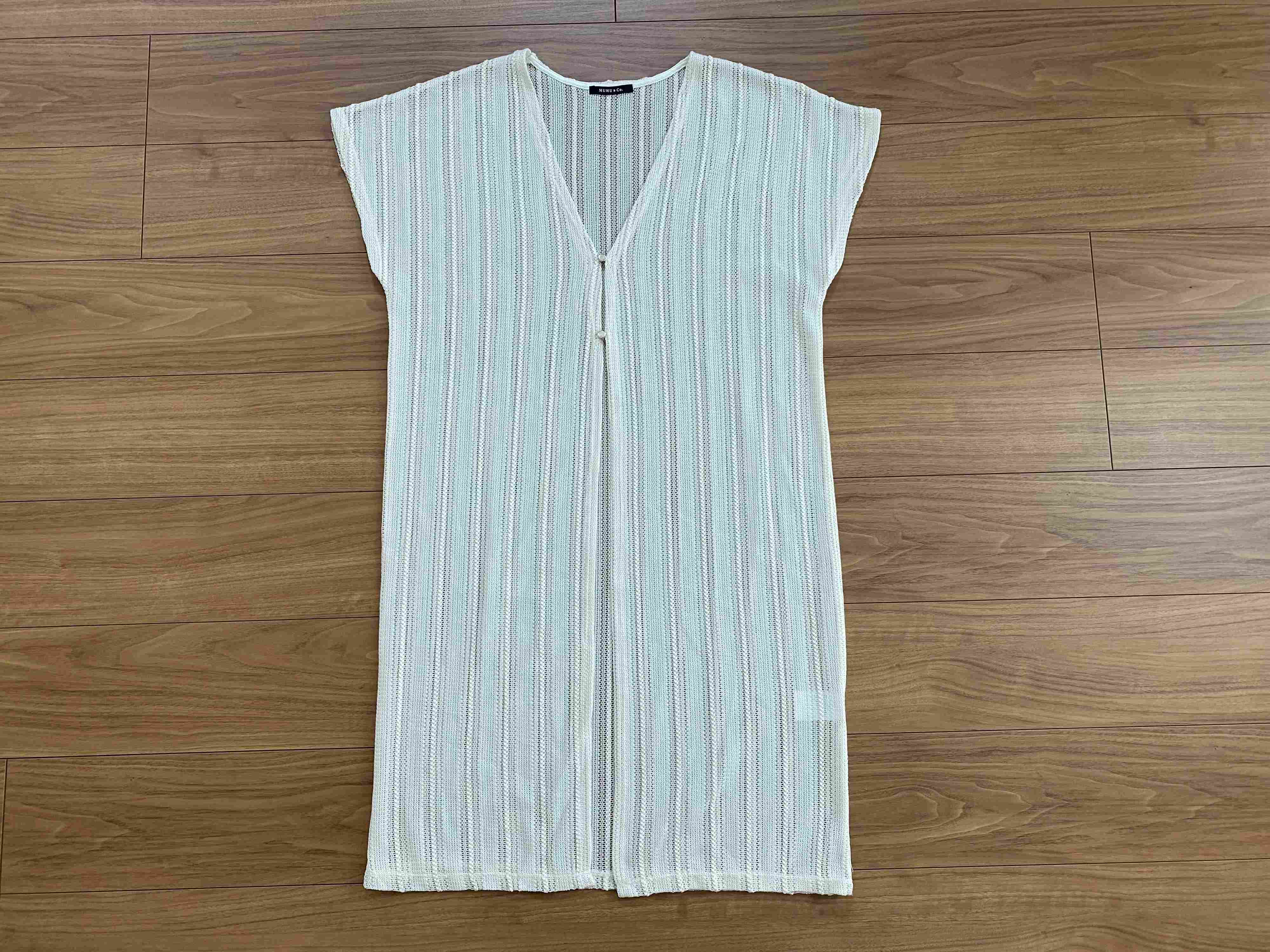 透かし編みが涼しげで上品な透け感のニットジレです。
