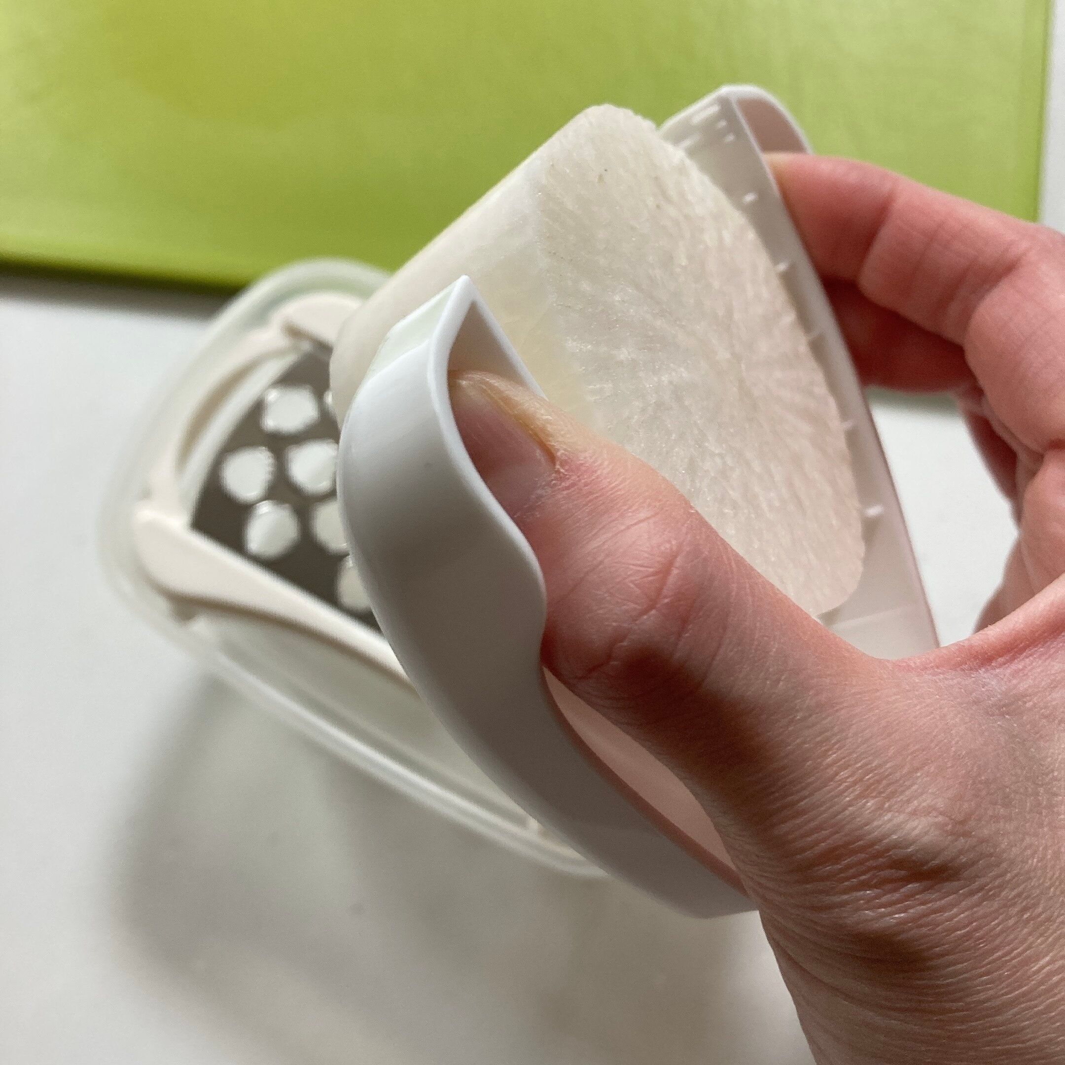 素手でおろしていたときは食材が小さくなってくると指を切らないように恐る恐るおろしていましが、この野菜ガードを使うとそういった心配は無用!しっかりホルダーが指をガードしてくれます。