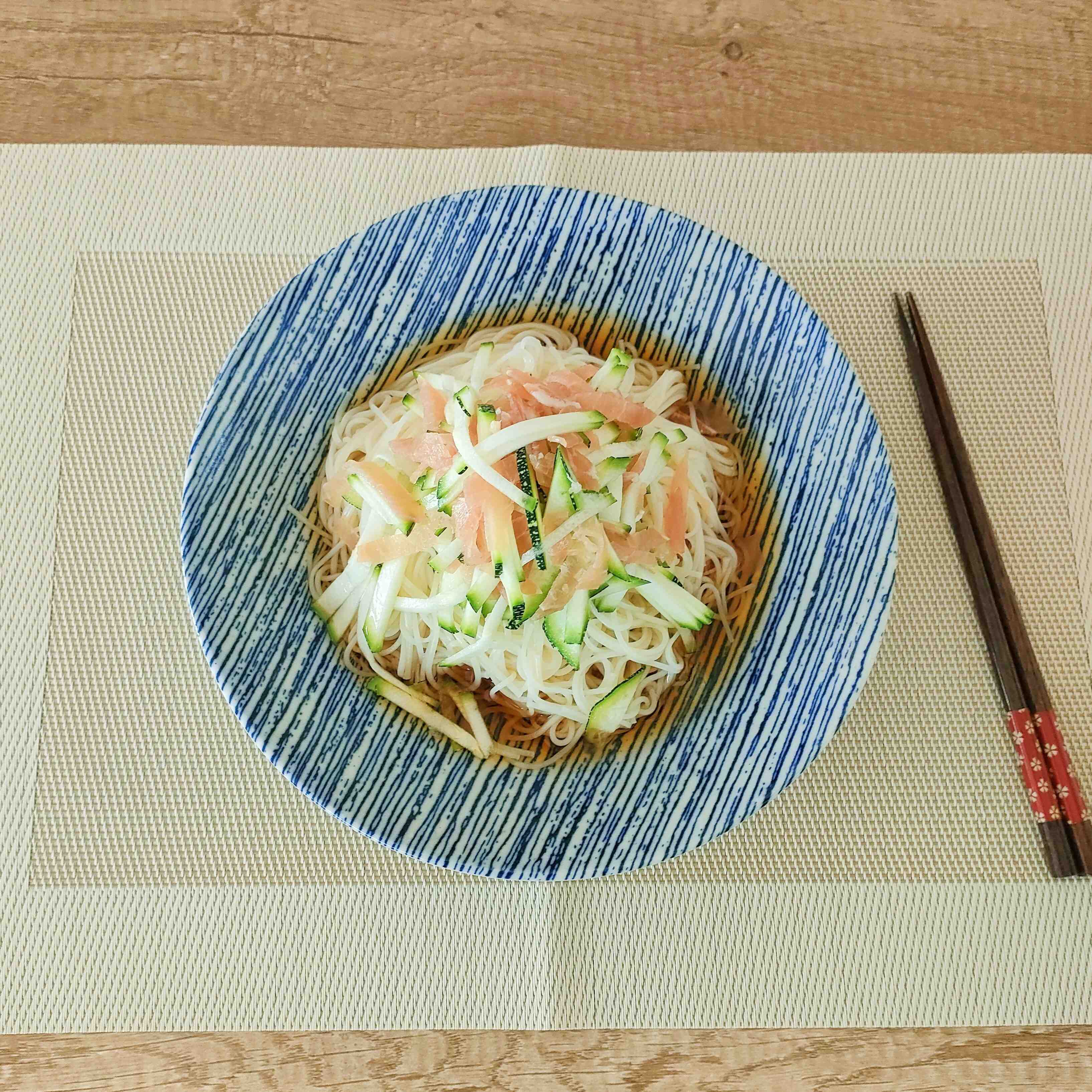 塩気がちょうどいい!生ハムとズッキーニの洋風そうめん