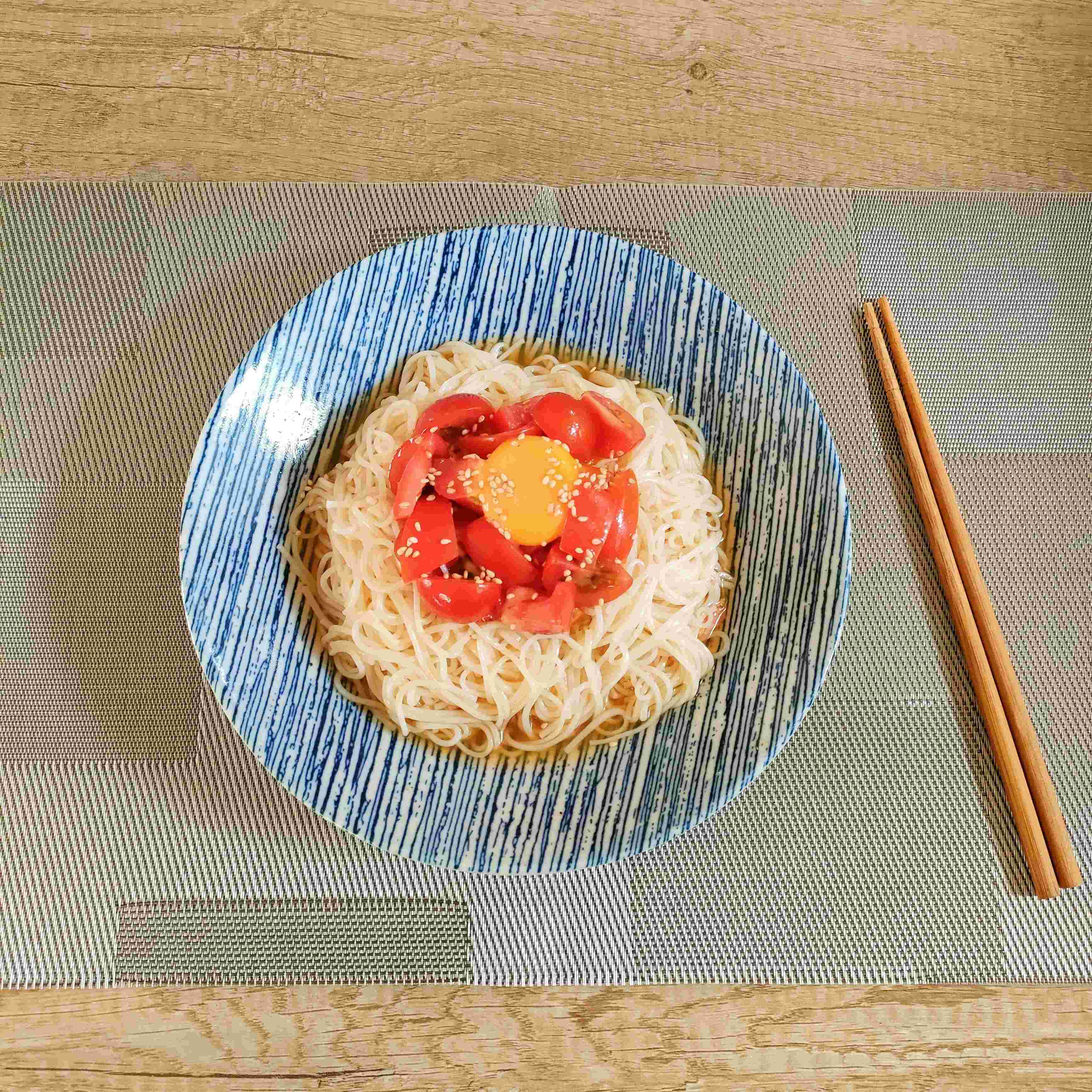 さっぱりなのに濃厚感!トマトのユッケ風そうめん