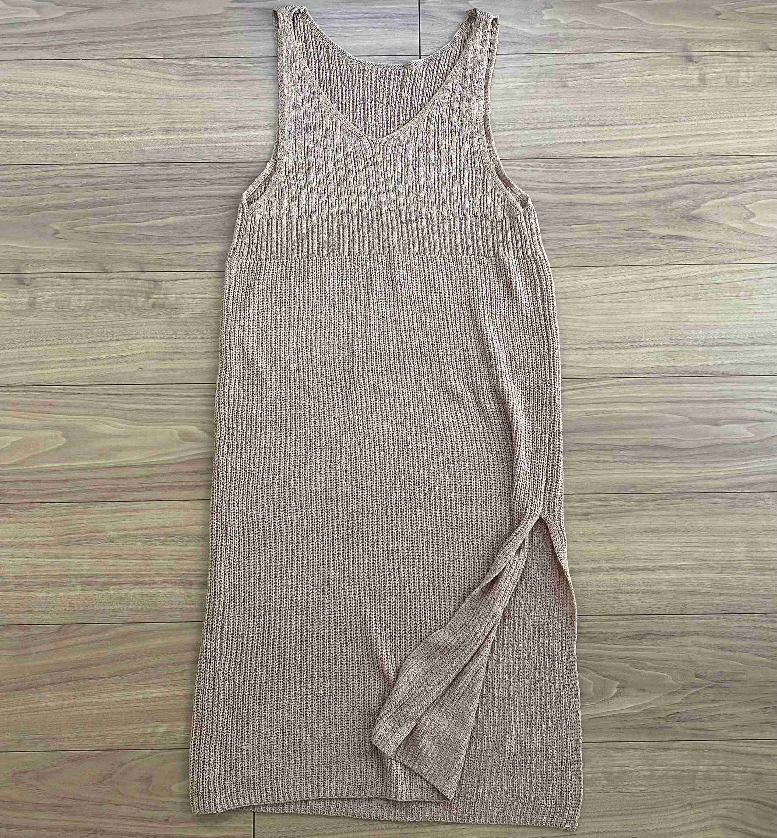 よく見ると胸下のリブ編みを境に編み目が切り替わっており、単調な編み目ではない工夫も高見えポイント。