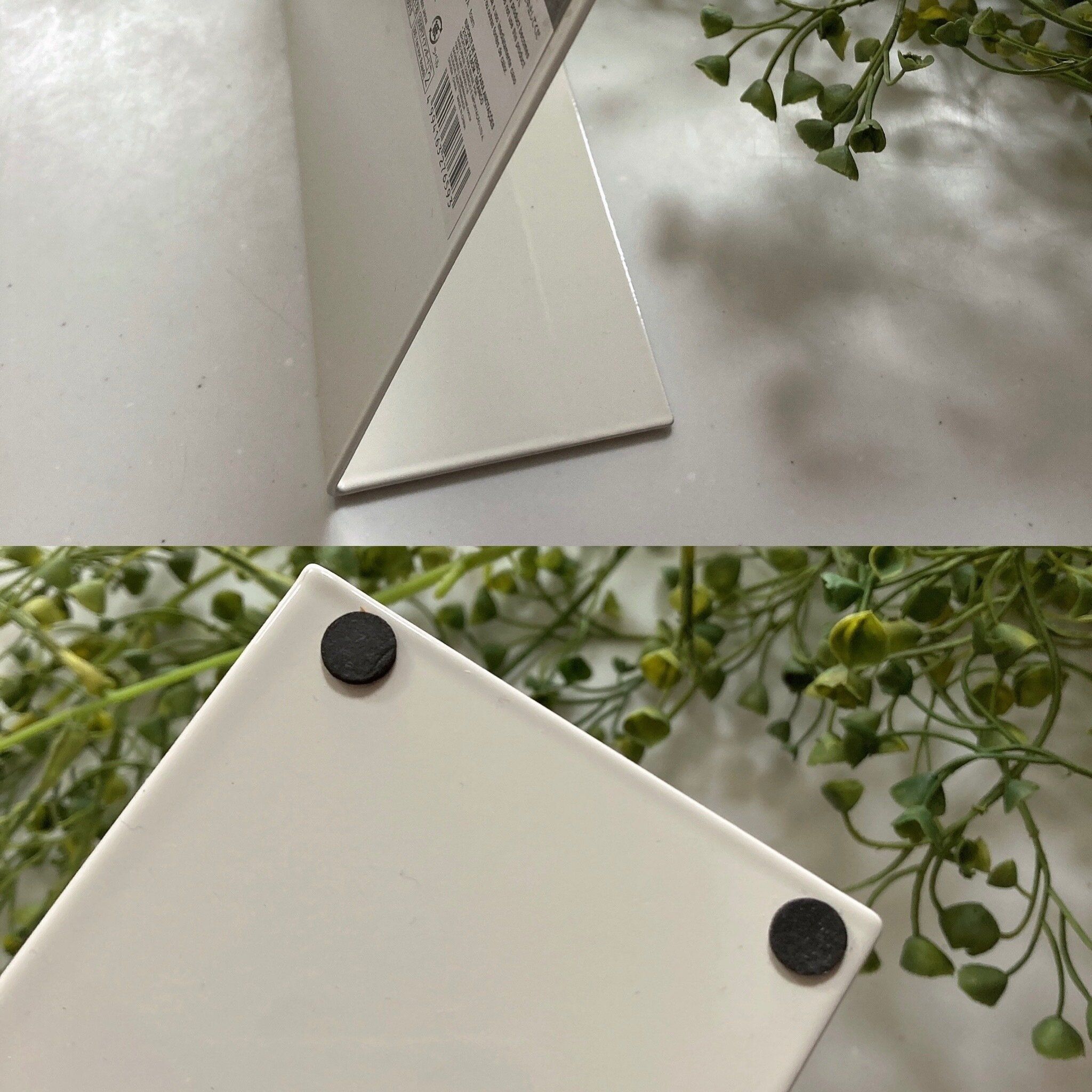 アイアンメモスタンドは本体が鉄でできているのでマグネットを貼りつけて使うことができます。また、ちょうどいい角度と裏にはすべり止めがついています。