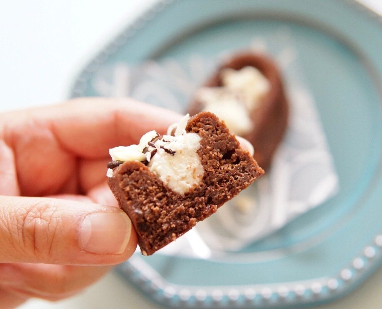 少し画像では見えづらいですが、ガトーショコラ中央に詰まっているクリームの下には、とろっと口溶けの良いバニラガナッシュが隠れています。バニラの甘い香りと風味が、通常の生ガトーショコラに加わりとろける甘みにきっと満たされることでしょう。