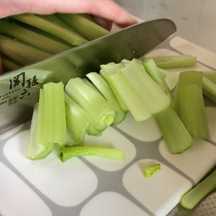 しらたきをサッと洗い、小松菜も洗って4cm程度のざく切りに、ベーコンは1cm幅に切る。