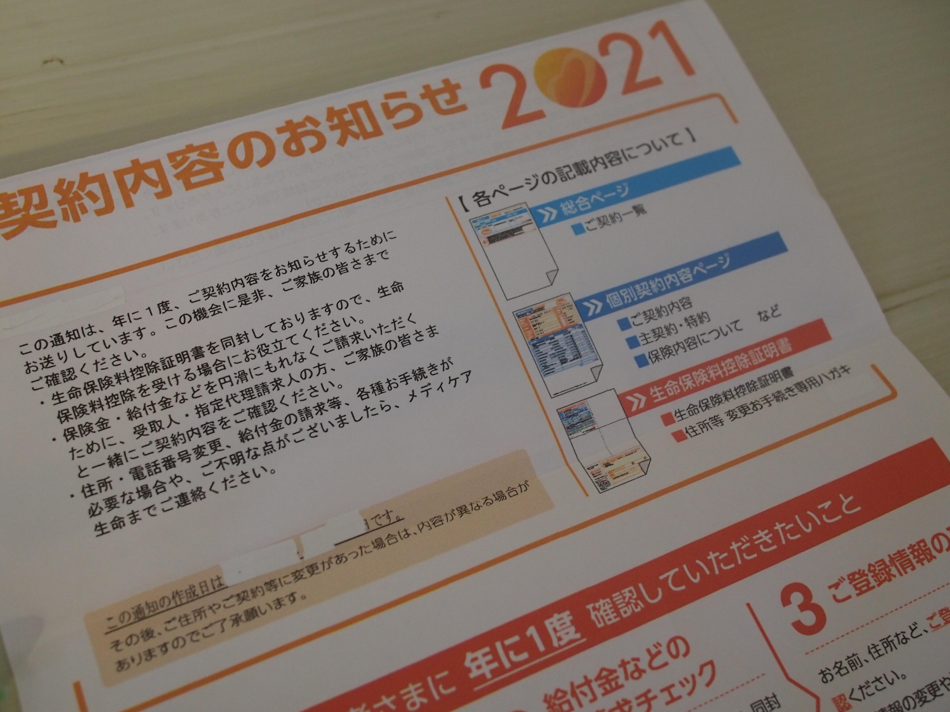 保険会社によって異なりますが、毎年、年末調整が必要となる10月中旬~下旬にかけて加入している保険会社より「生命保険料控除証明書」などが入ったお便りがご自宅に届きますよね。届いた書類の封をあけ、会社などに提出が必要な証明書を取り出したあと、そのほかの添付書類に目をとおさない人も多いのではないでしょうか。