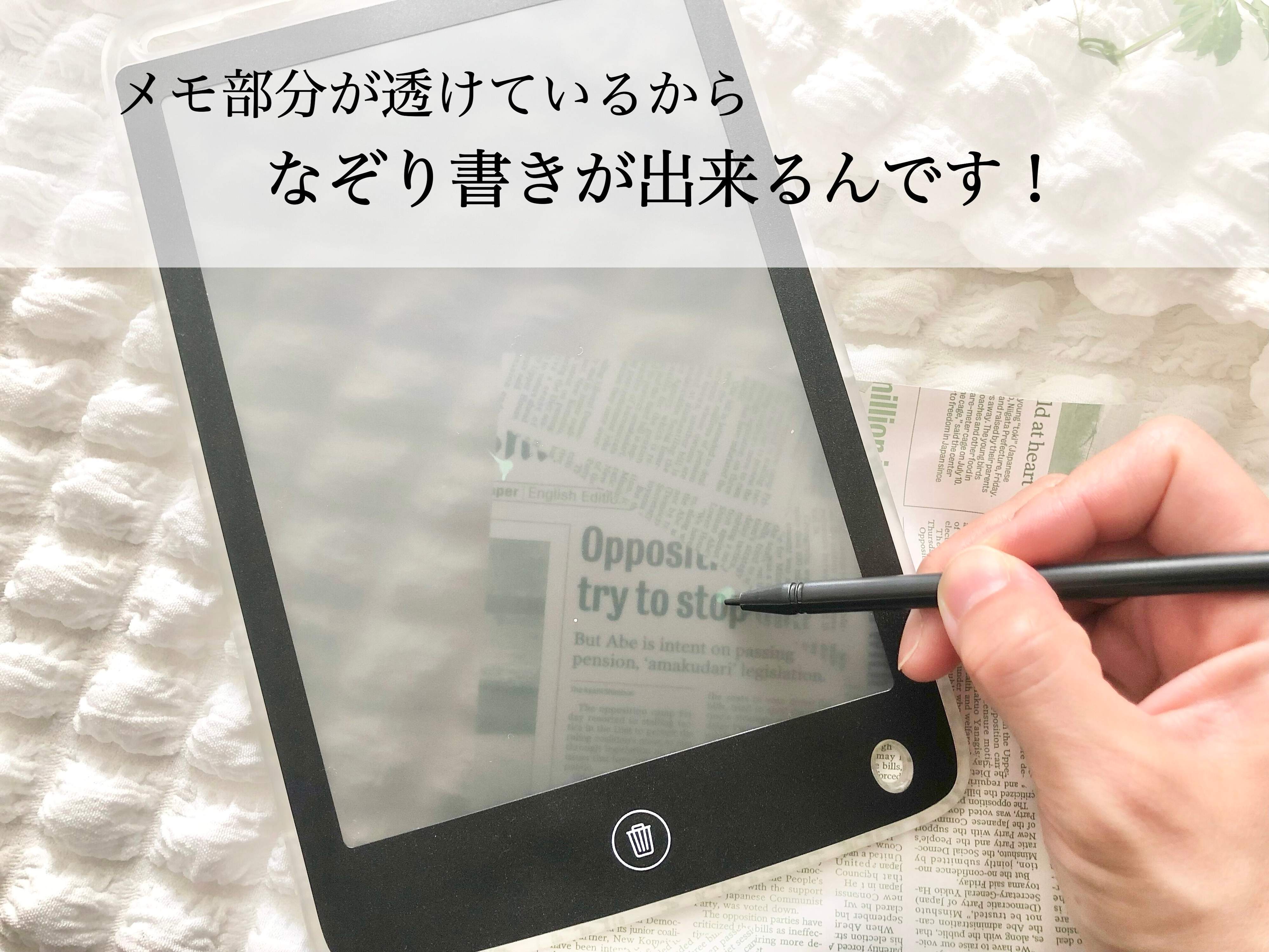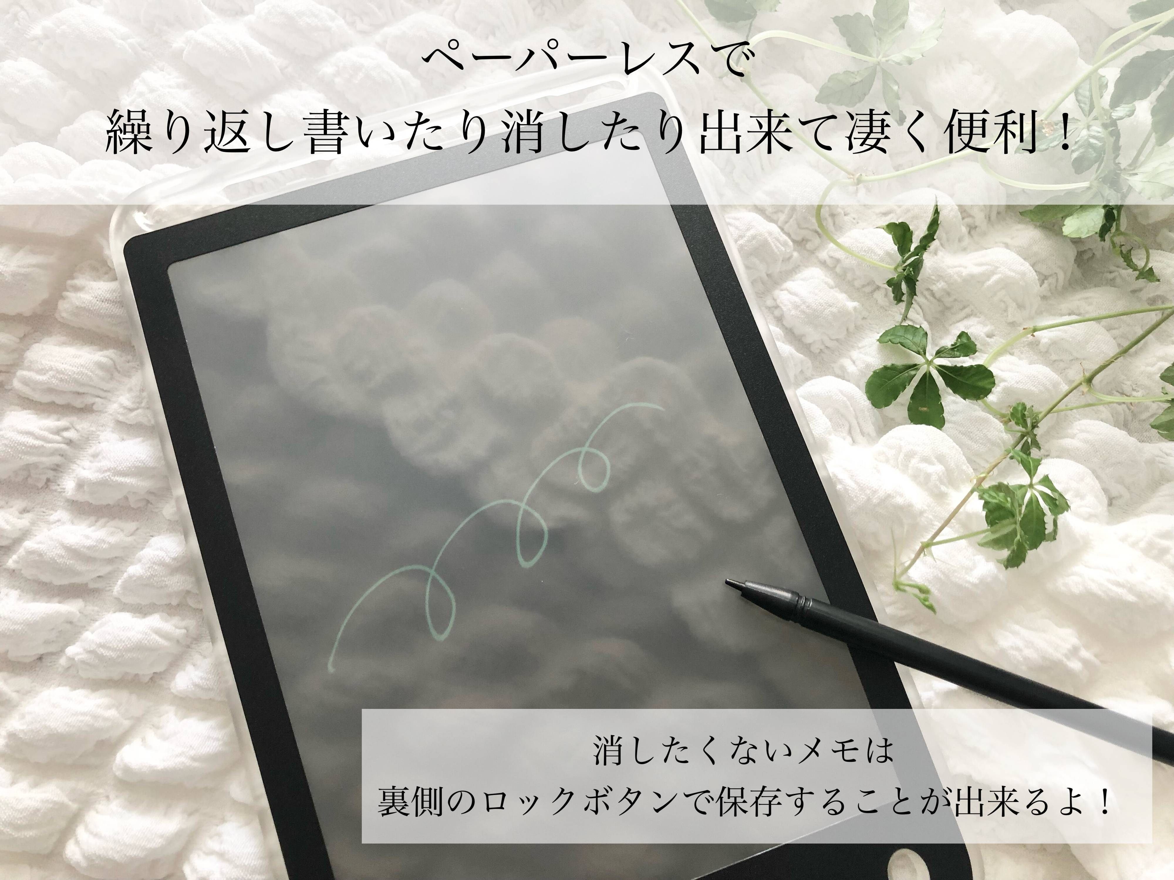 ちょっとしたメモや絵などを何度も繰り返し書くことができて、書いたものはボタンを押せば一瞬で消せるという優れもの。