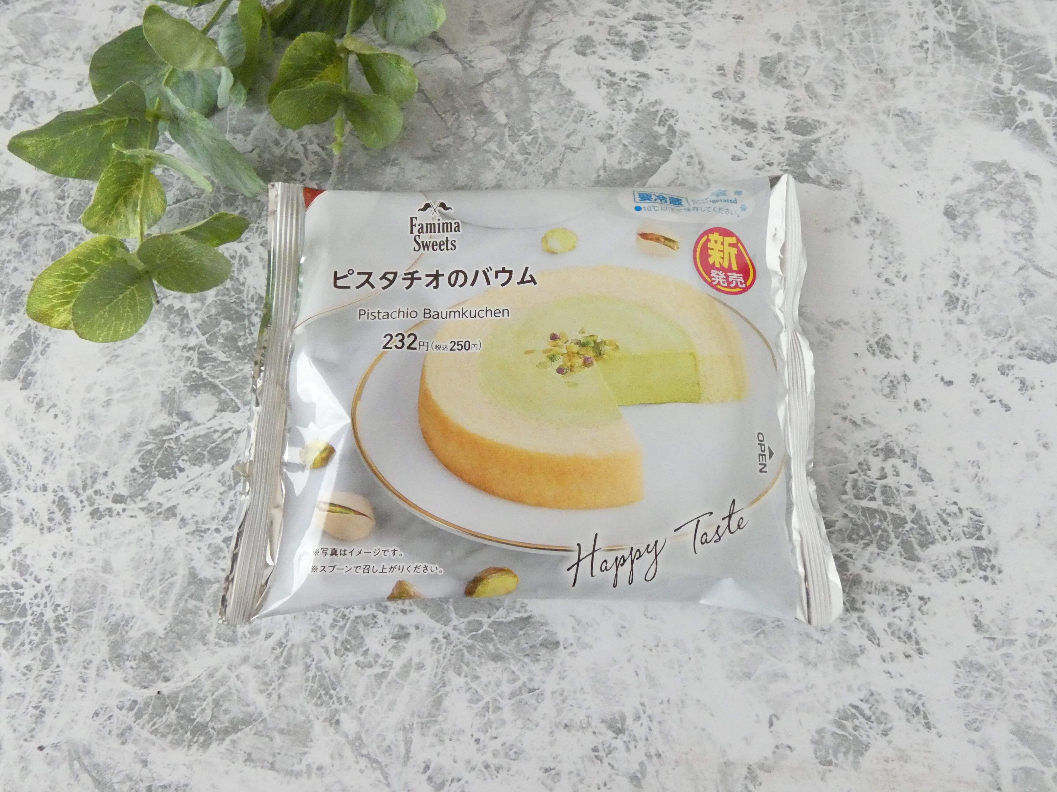 ファミリーマート新発売「ピスタチオのバウム」は250円。
