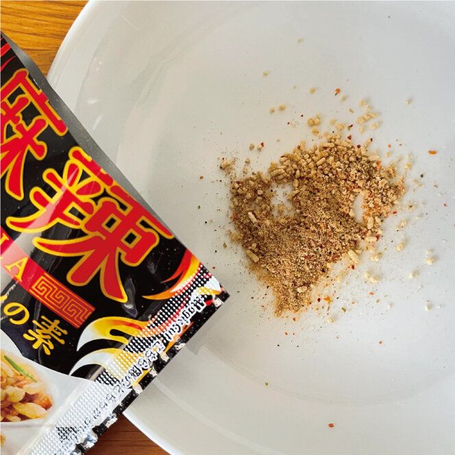 にんにくのきいたベースに麻辣の辛さを足した粉末状の調味料です。