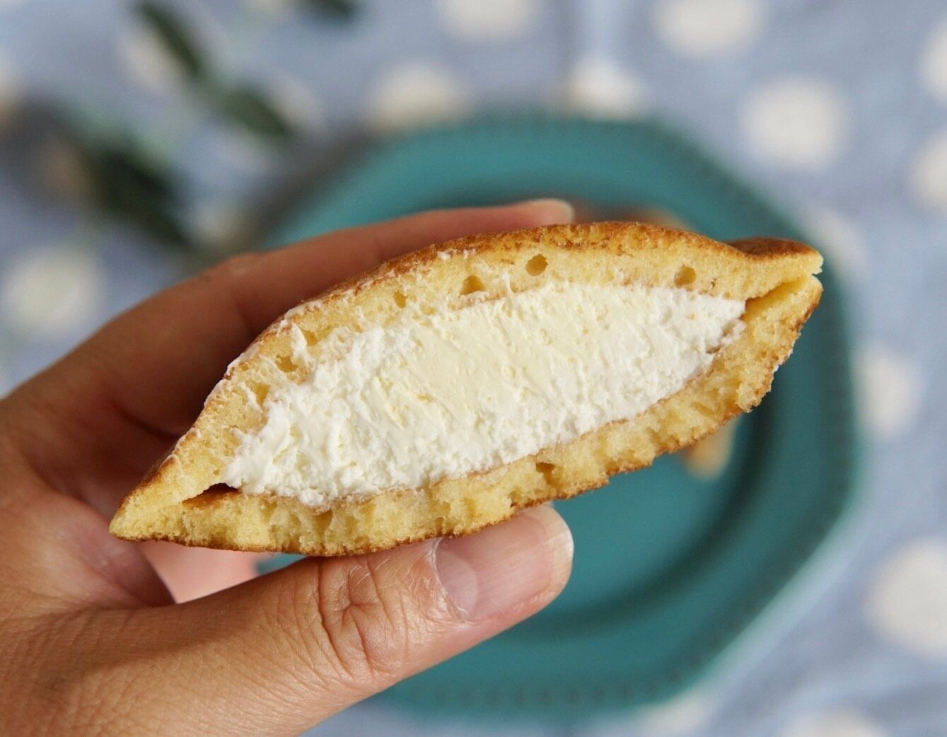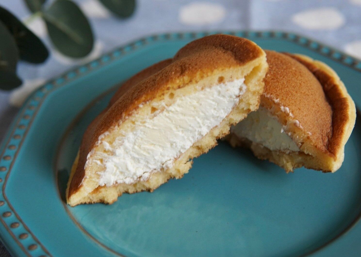 どらもっちならではの、もちもちとした歯切れのよい薄皮生地に、今回もたっぷりクリームが挟まれています。ふんわりとしたミルクチーズクリームと、それよりも濃度の高いしっとりとしたチーズクリームの2層になっています。