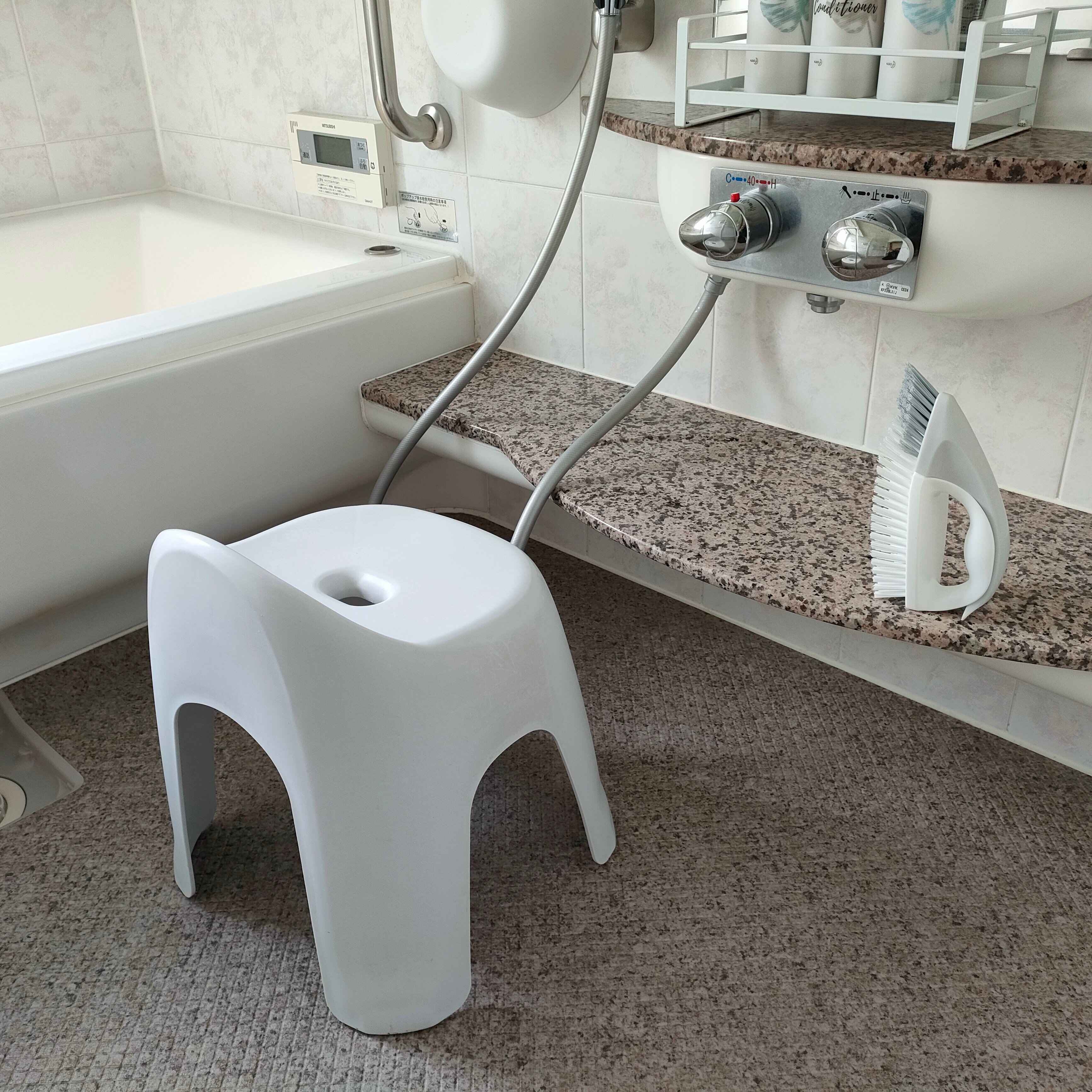 お風呂掃除はこのように広い面から細かい部分まであるので、何種類ものブラシが必要になりますが、これなら1つで事足りるのでお掃除もラクに。収納場所も省スペースで済みます。