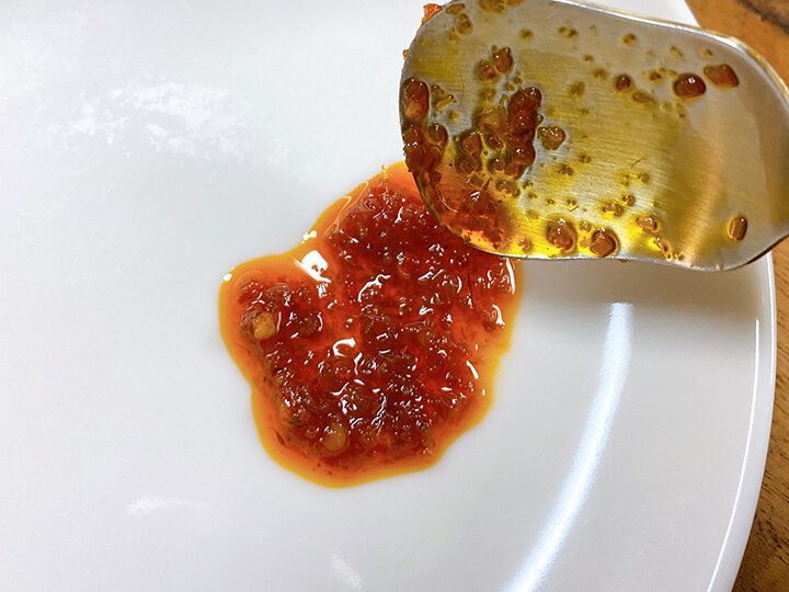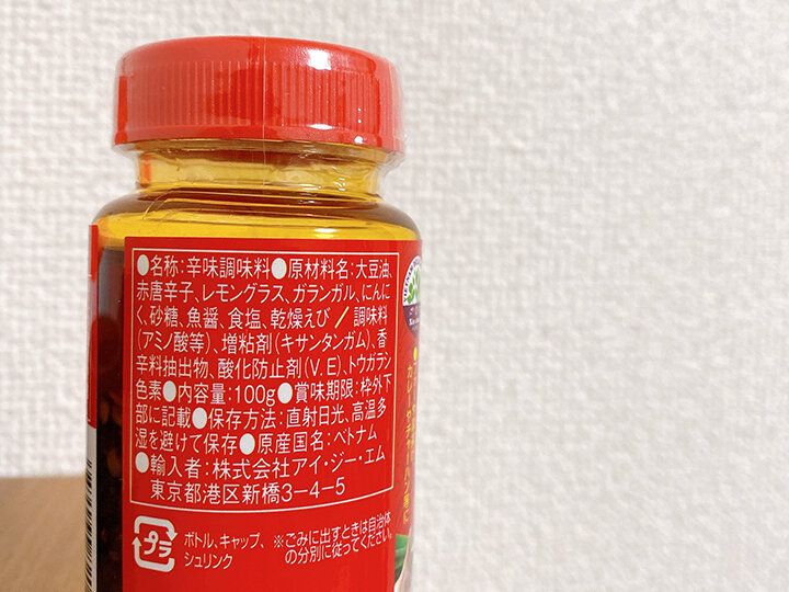 フタを開けるとレモングラスのいい香りがします!一瞬でエスニックな気分に……!食べるラー油のように具材が盛り込まれています。