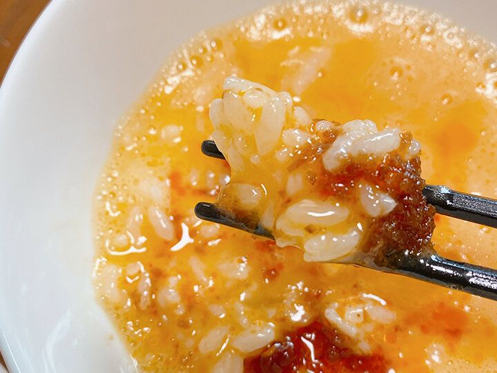 サテトムにカルディ「オマール海老めんつゆ」をちょいたしすると、海老の風味がすごい卵かけご飯が完成します!これはもう箸が止まらないので要注意です!