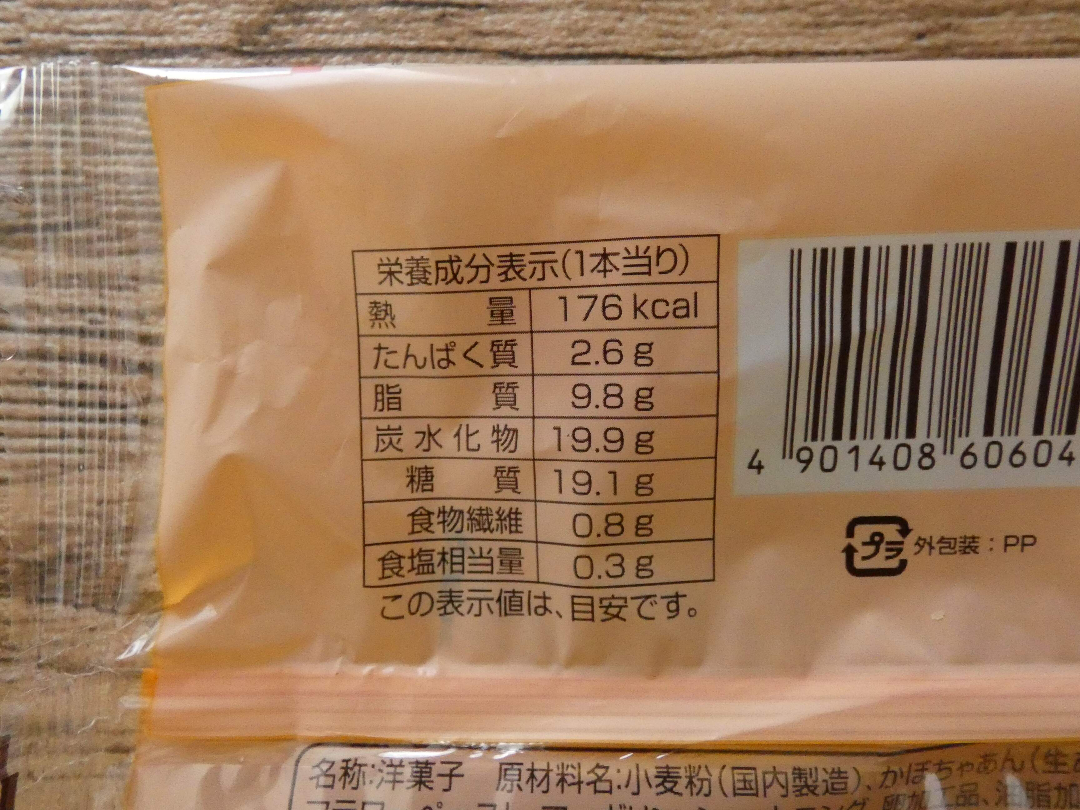 栄養成分表示を見ると1個のエネルギーは1本当たり176kcal。