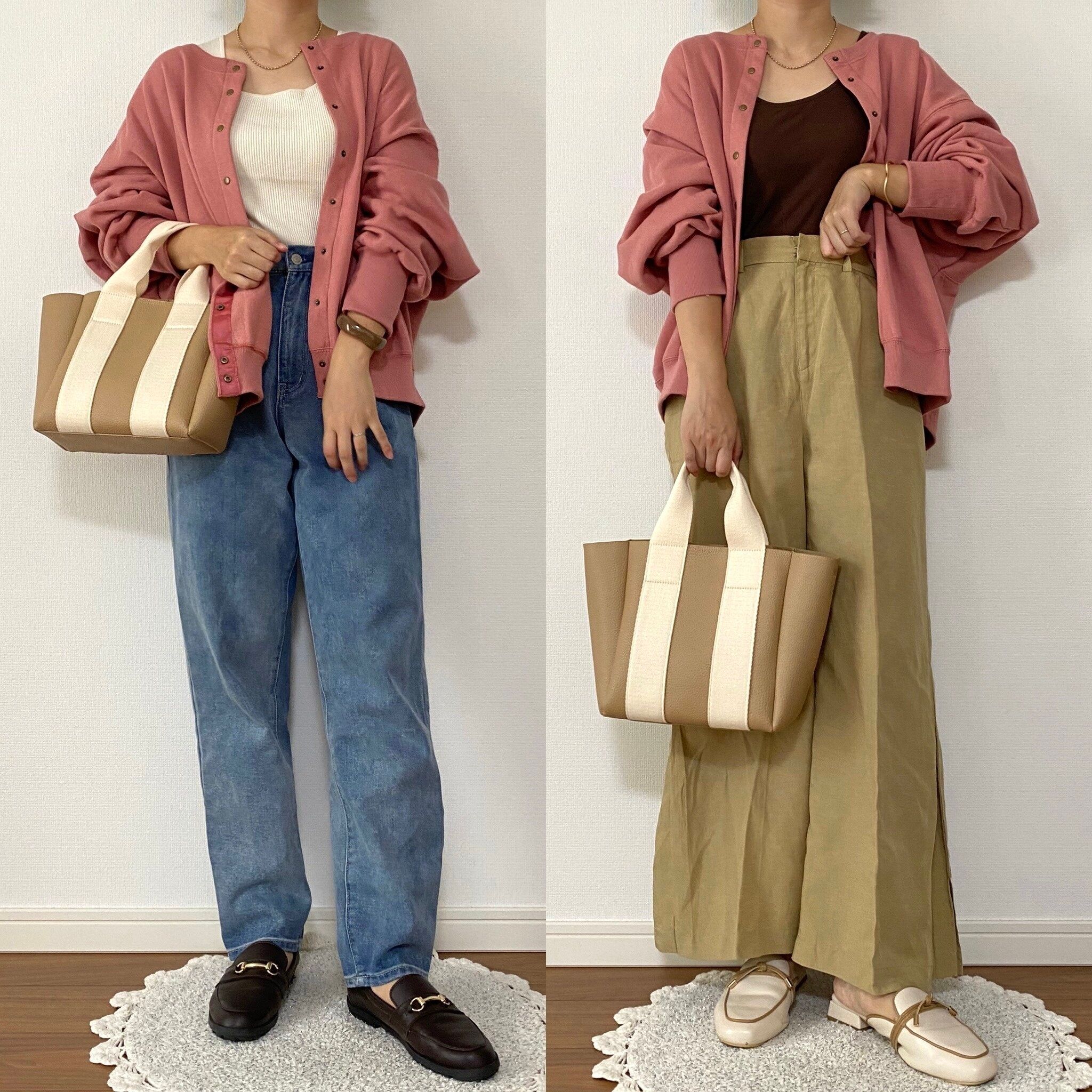 ピンクは派手すぎないくすんだ色味で大人コーデにも合わせやすいカラーです。