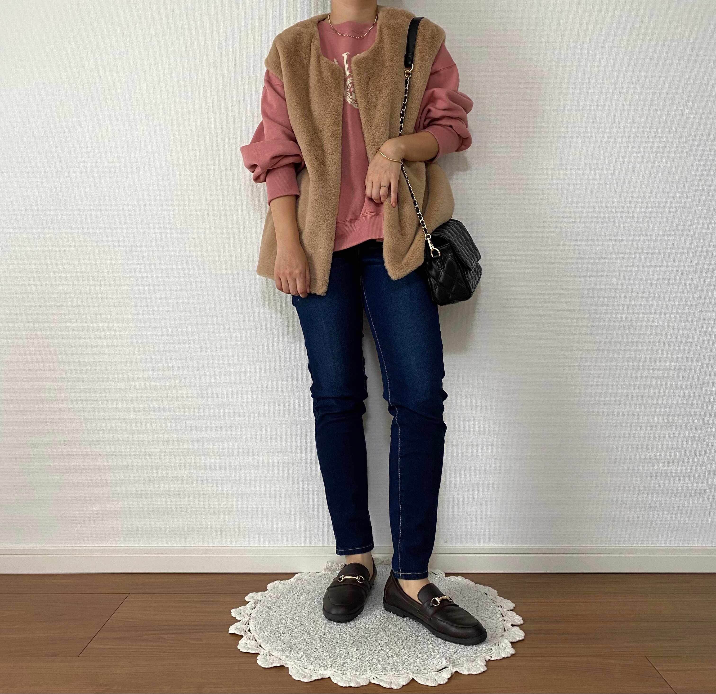 大人になると手が出しにくいピンクカラーですが、比較的落ち着いたカラーなのでどんなアイテムとも合わせやすいです。