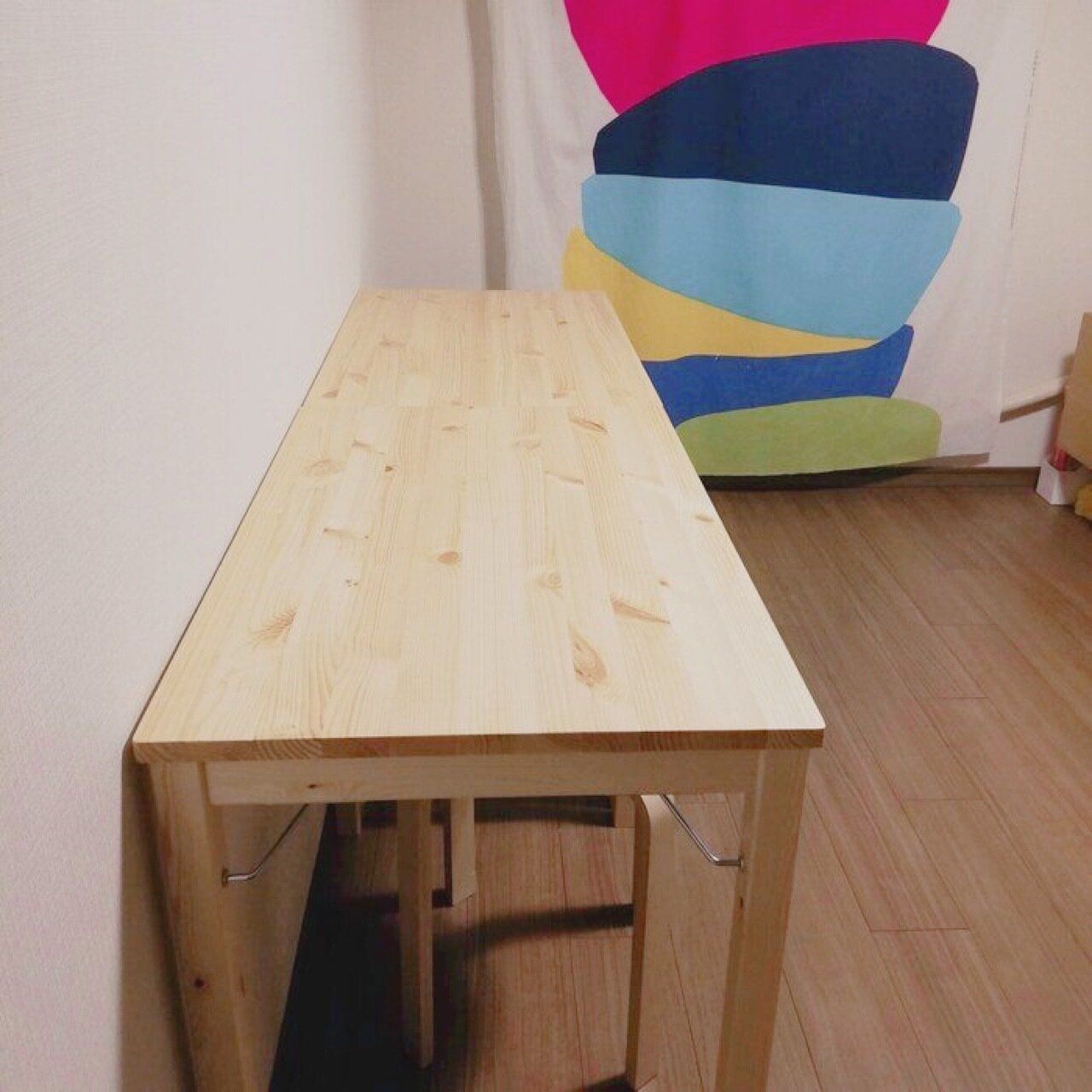 購入した学習机は「無印良品」の折りたたみ式パイン材テーブル