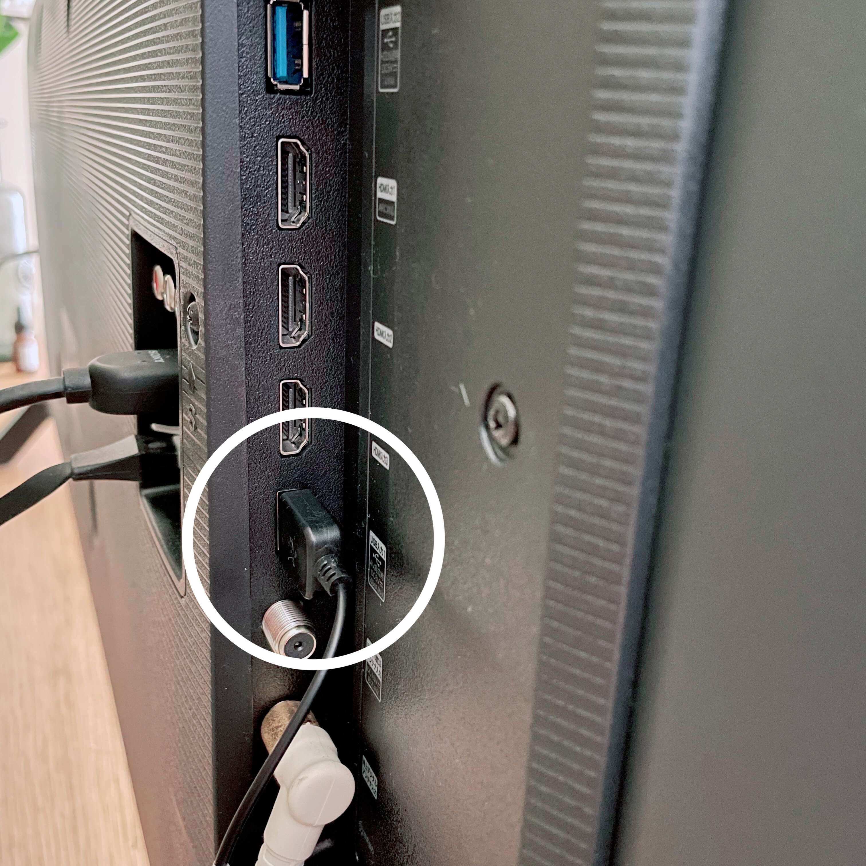 テレビ裏に「USB」と記載された差し口があるので、そこに差すだけでOKです。