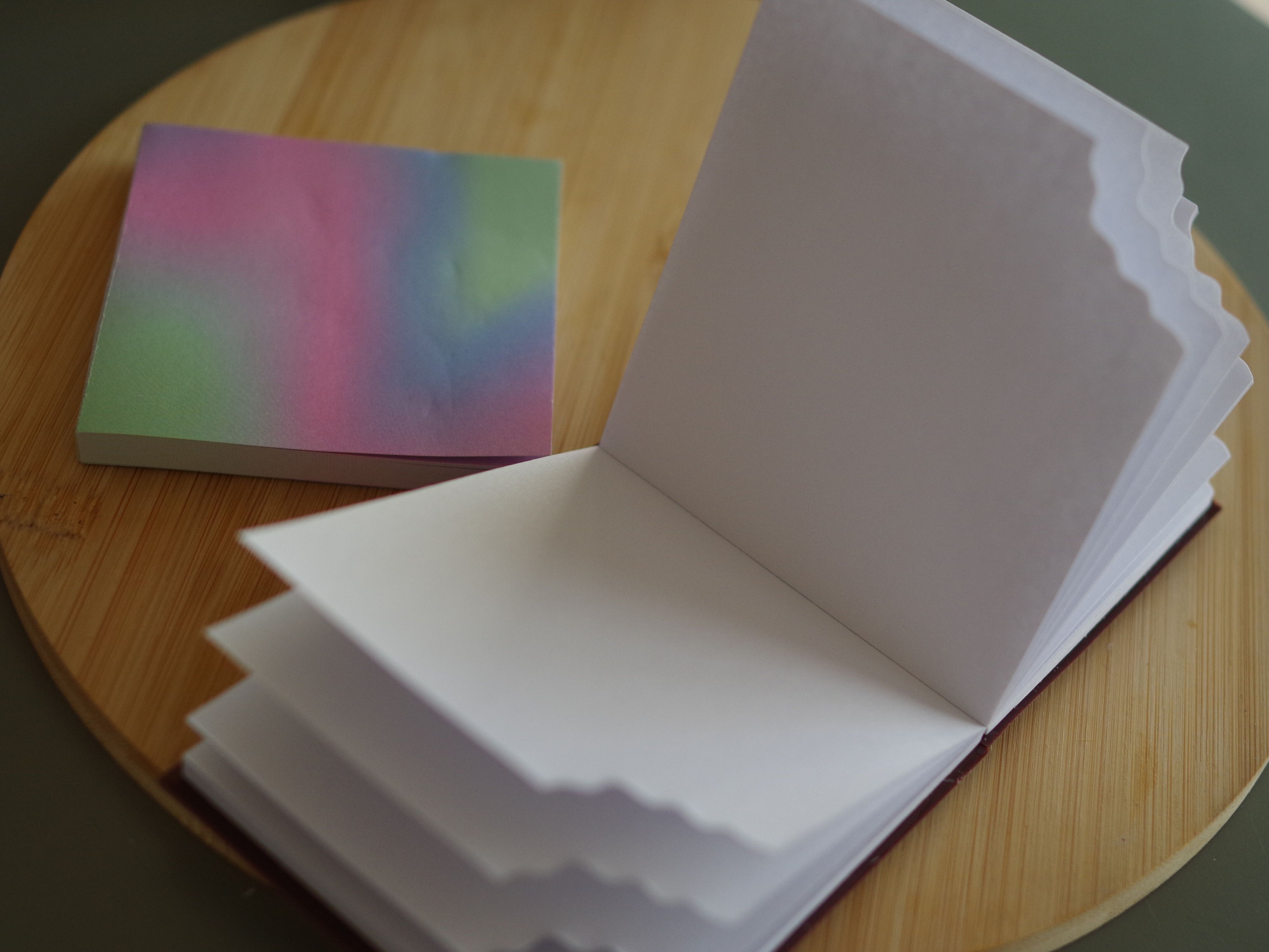 折り紙にもなる正方形のレインボーカラーのメモ帳はメモ書き用に。メッセージカードなどいろいろな用途で活躍できそうです。