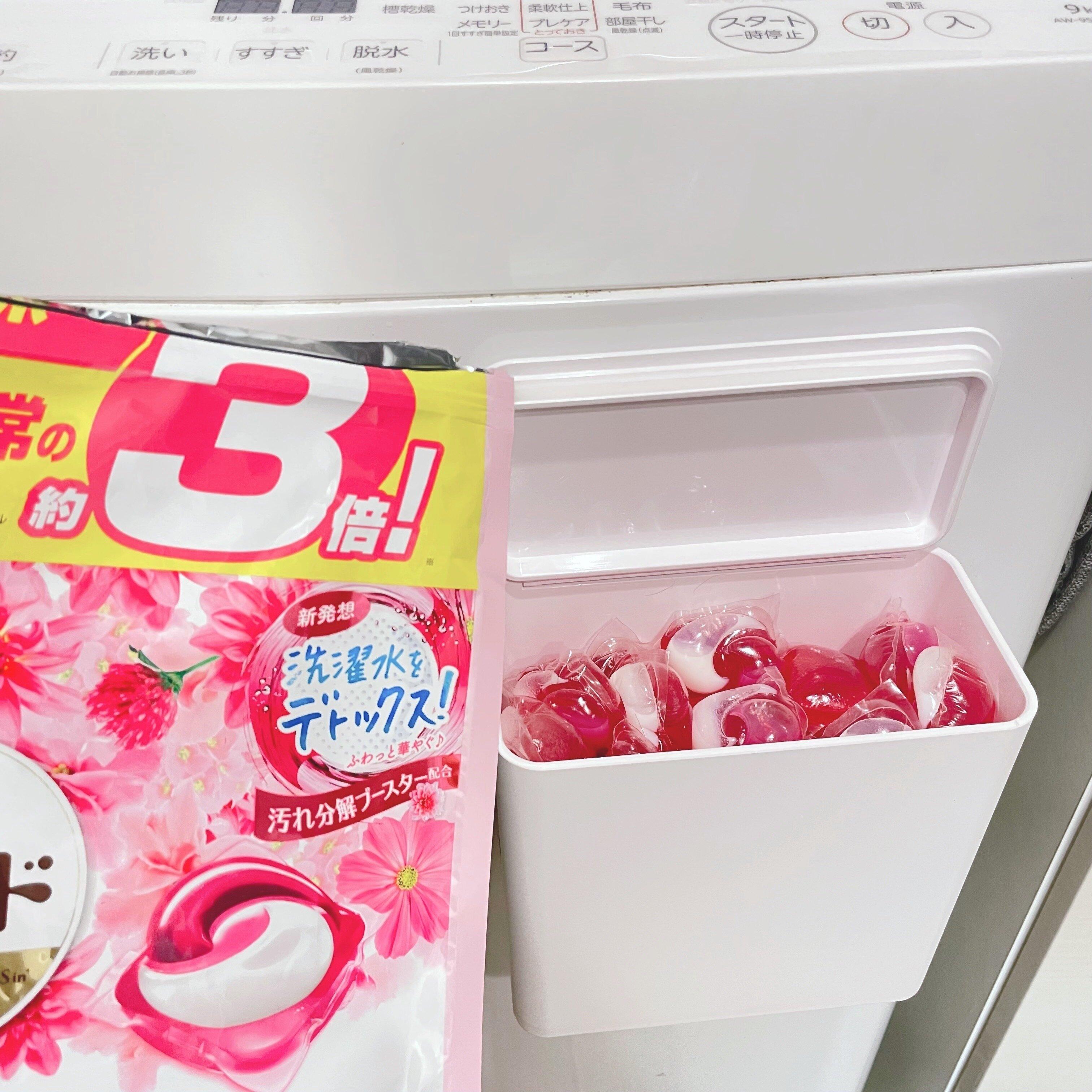 ジェルボールにしてからは大容量サイズを購入しても、収納箱にちょうど収まるサイズなので場所をとりません。通常の約3倍の量なので4人家族でも1カ月ほど持ち、残量もわかりやすいので管理がラクになりました。