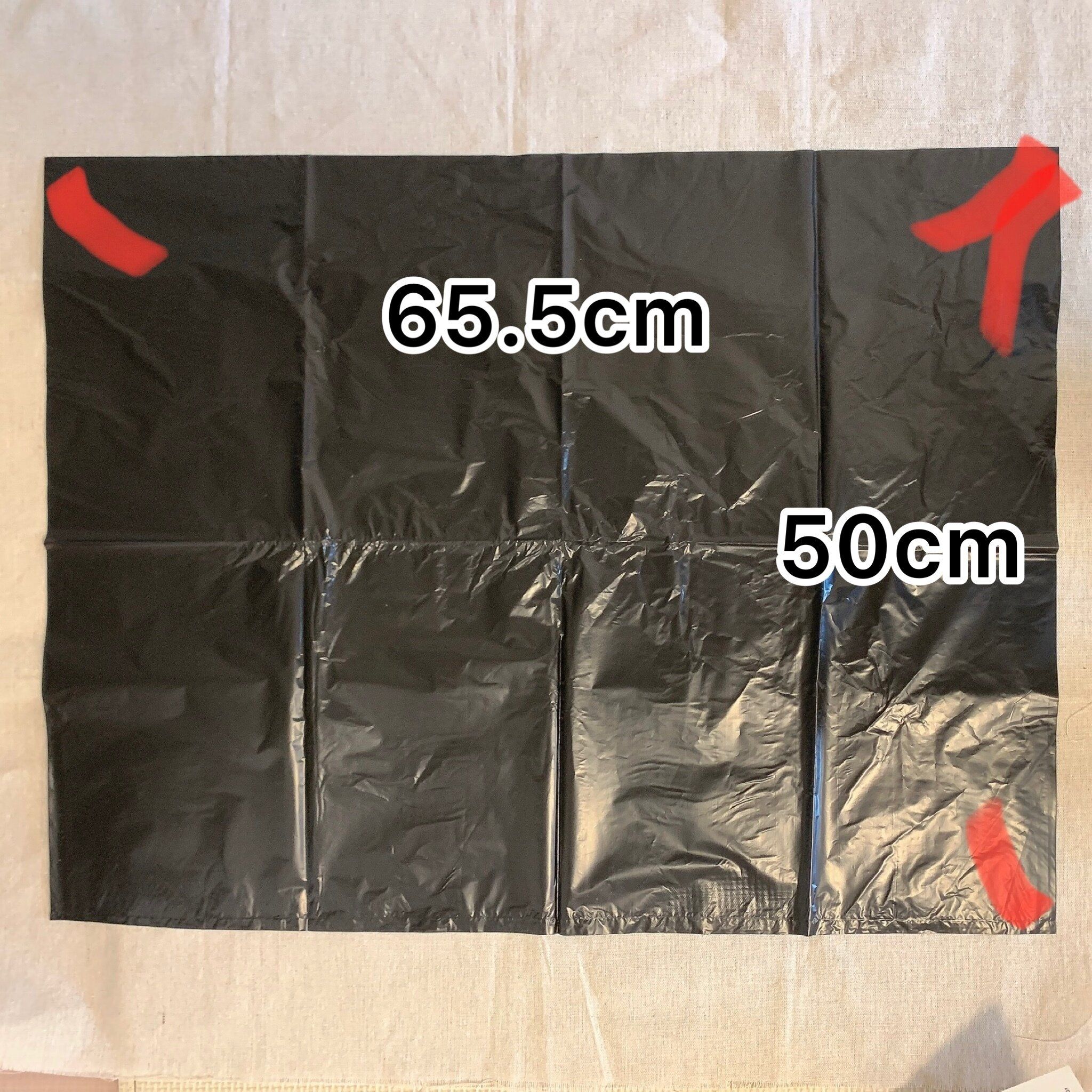 汚物袋の大きさは約縦50cm×横65.5cm。とてもしっかりしたビニール袋なので捨てる時も安心。