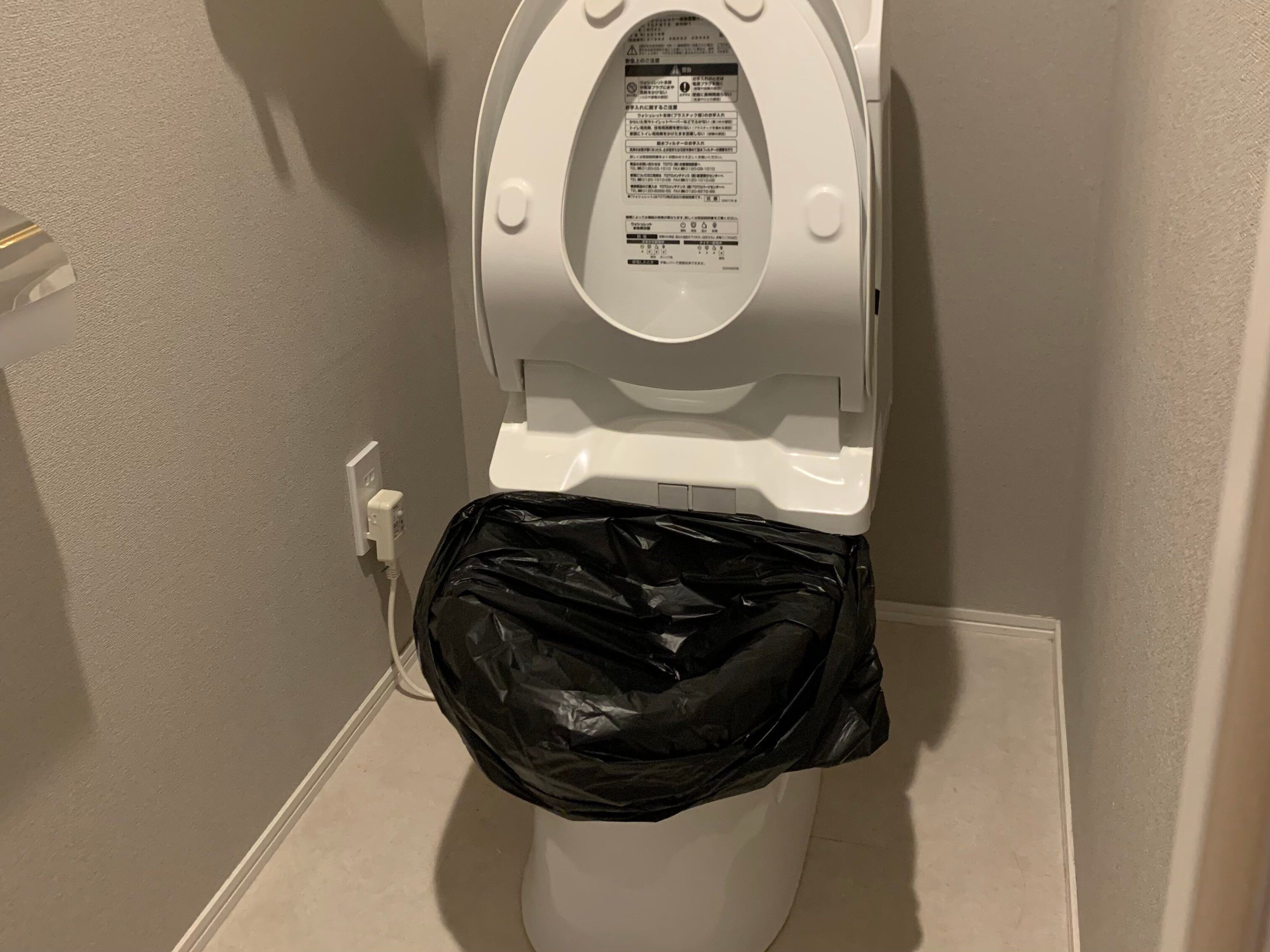 排泄用袋として便座の上に汚物袋をもう1枚かぶせます。