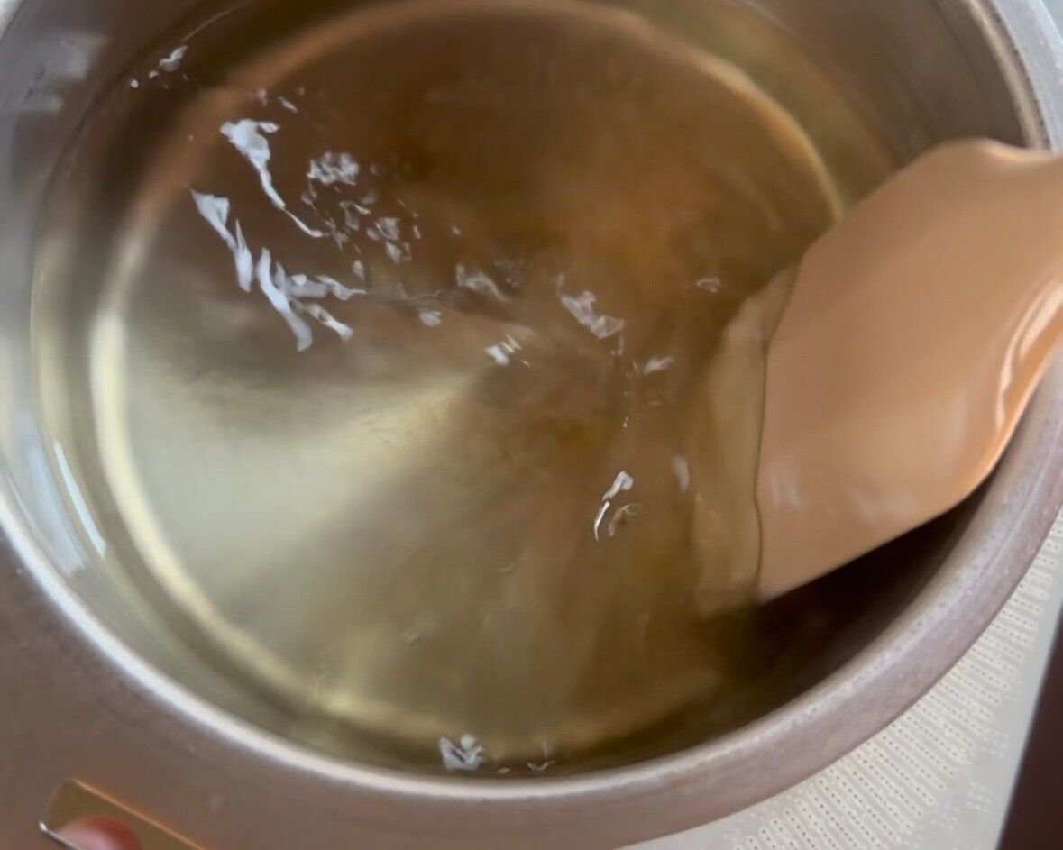 3.鍋に水(300ml)を入れ、沸騰直前で火を止めて砂糖、はちみつを入れ、混ぜて溶かす。5分ほどそのままにして粗熱を取る