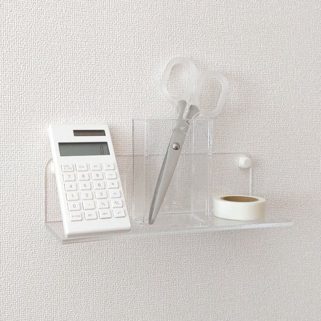 無印良品や100均の収納アイデアを発信しているサンキュ!STYLEライターのぬまです。今回はセリアで購入した「アクリルウォールラック 20cm」をご紹介します。100均で購入できる3ピンフックを活用すれば、簡単に壁に設置できます!壁に付けられる家具は圧迫感を感じることもありますが、このラックは透明なので圧迫感はほとんどありません。デスク周りやキッチン、洗面所、玄関など家中で活用できる便利な商品です!
