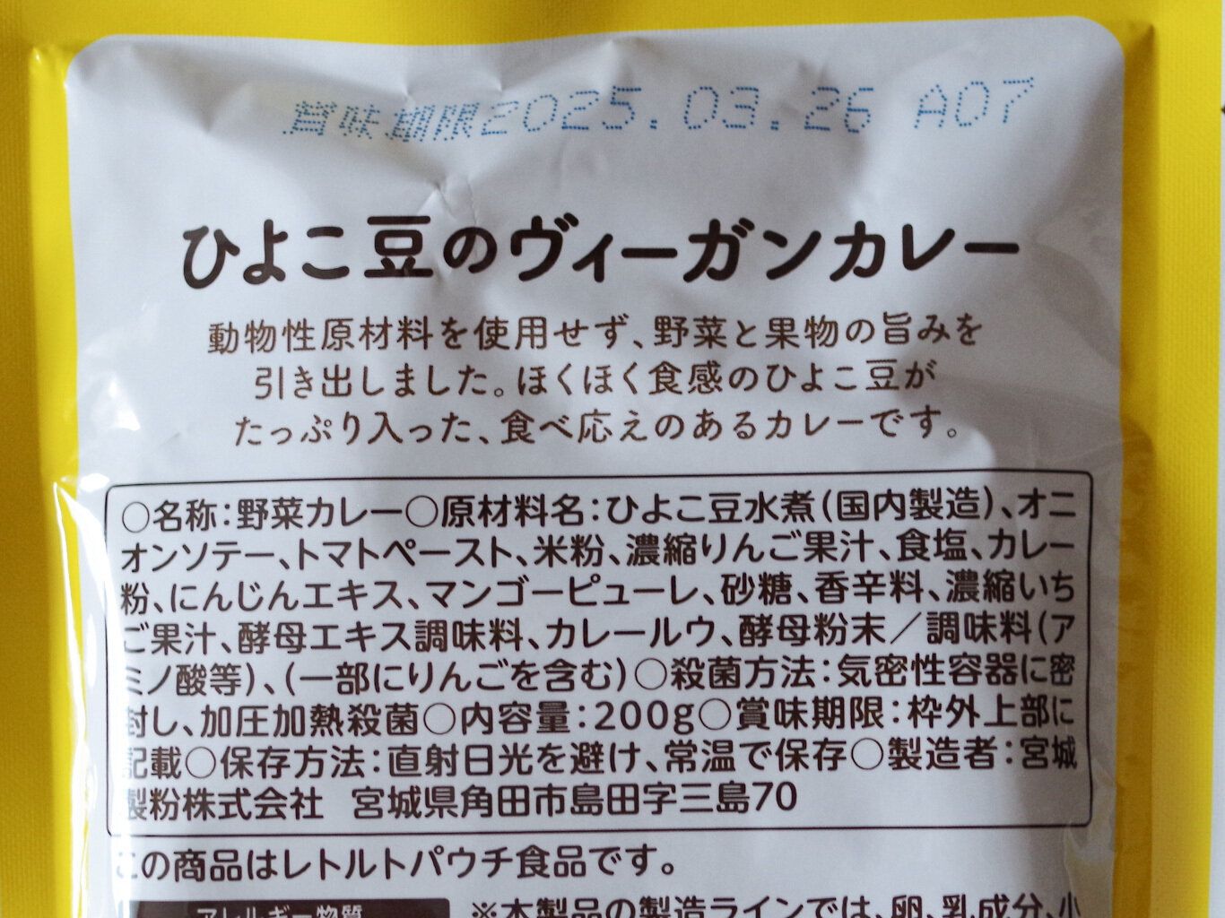 業務スーパー「ひよこ豆のヴィーガンカレー」は約100kcal