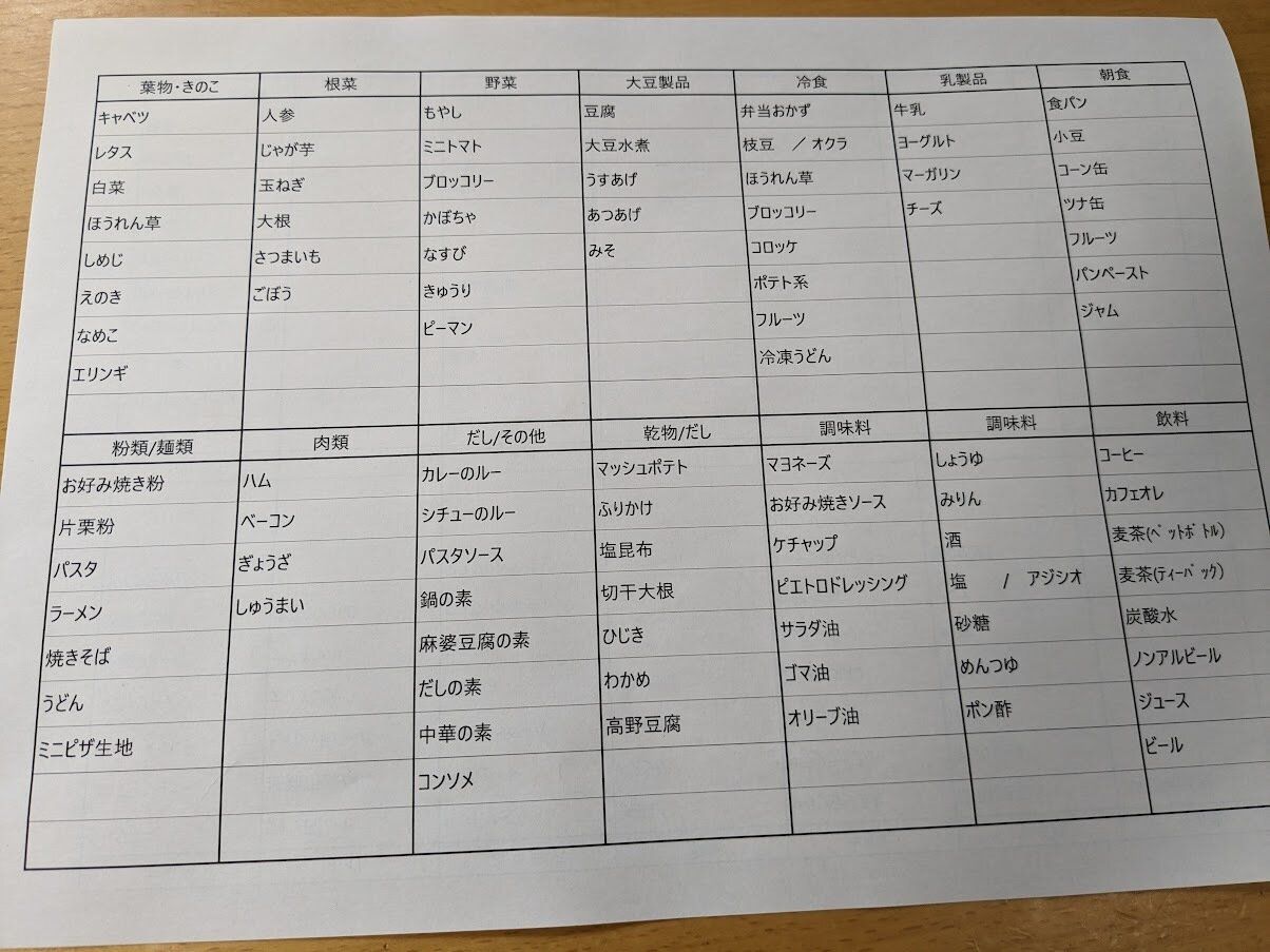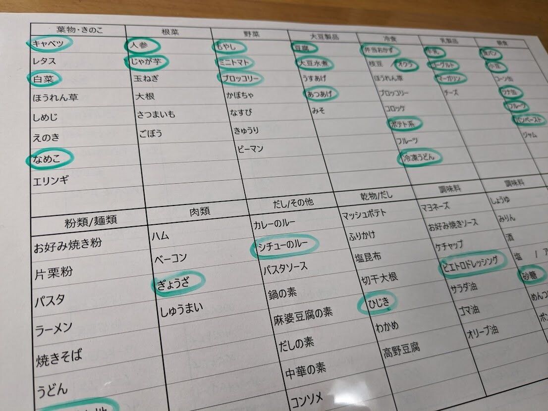 次回、購入するものに「〇」をつけられるようにしました。