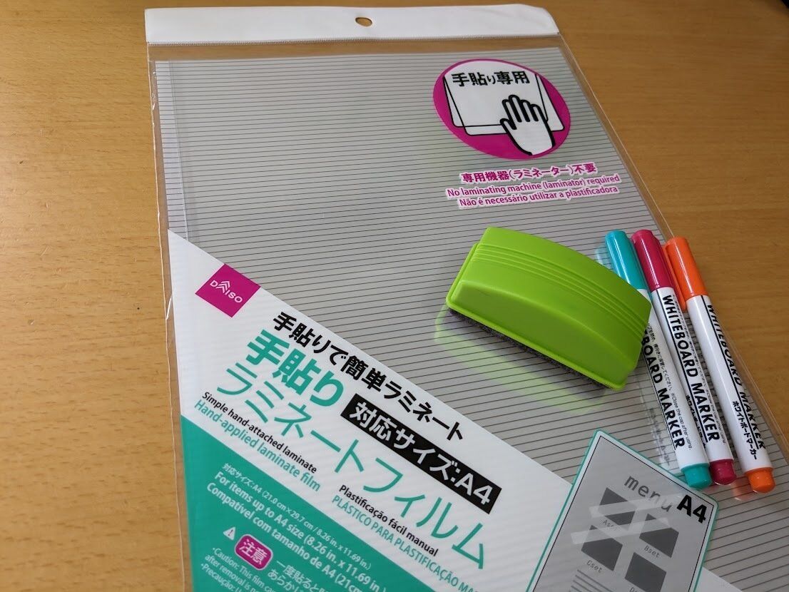 ・ラミネートフィルム(100均の手貼りラミネートを使用)