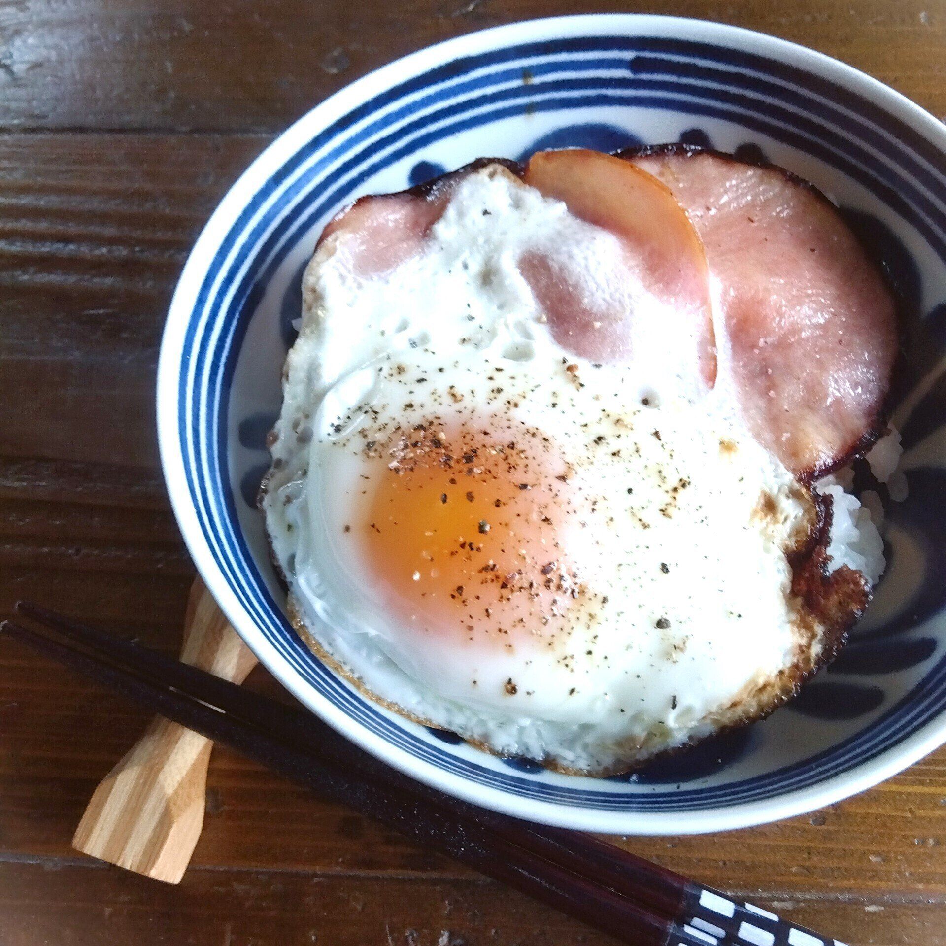 ランチや小腹がすいたときなどにちょうどいいハムエッグ丼。