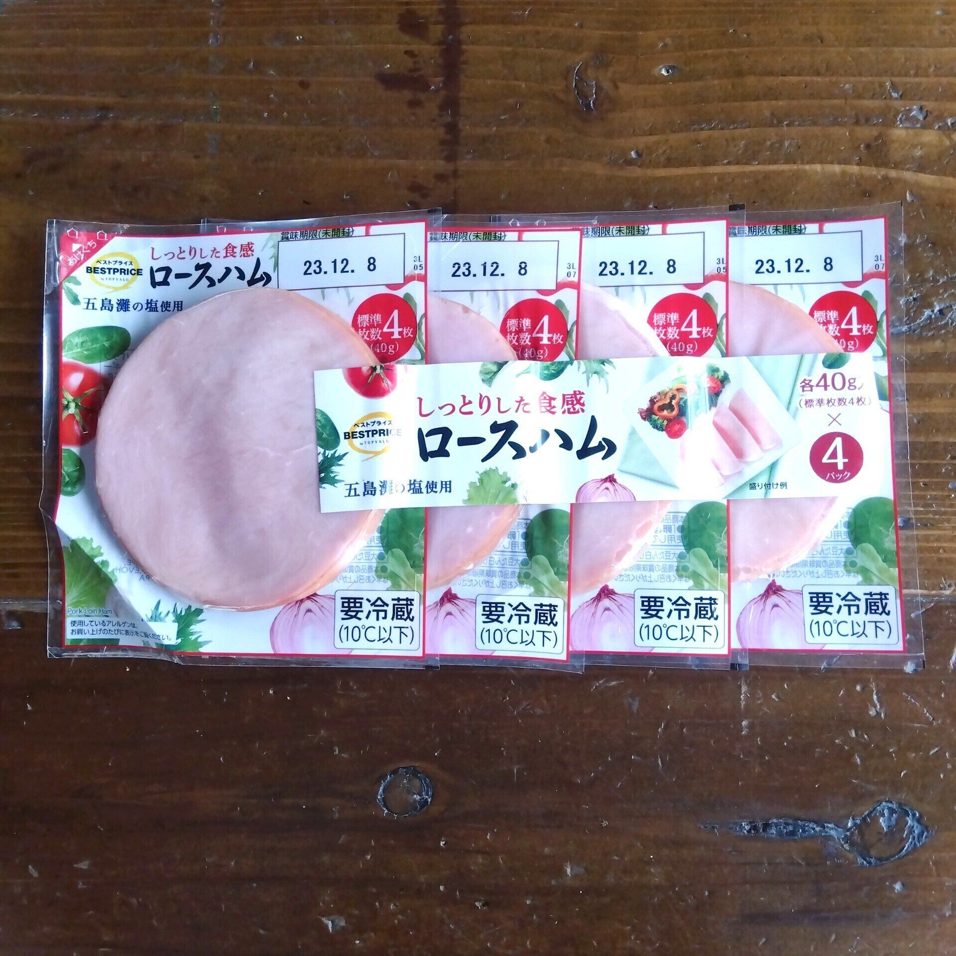 食材が乏しくなったとき、事件や事故の対応で調理時間が取れなかったときのお助け食材として巡視船でも活躍していた「ロースハム」。今回わたしが購入したのは、4枚入り4パックで268円のもの。安いうえに火をとおさず手軽に使えておいしいので、今でも冷蔵庫に必ず常備しています。