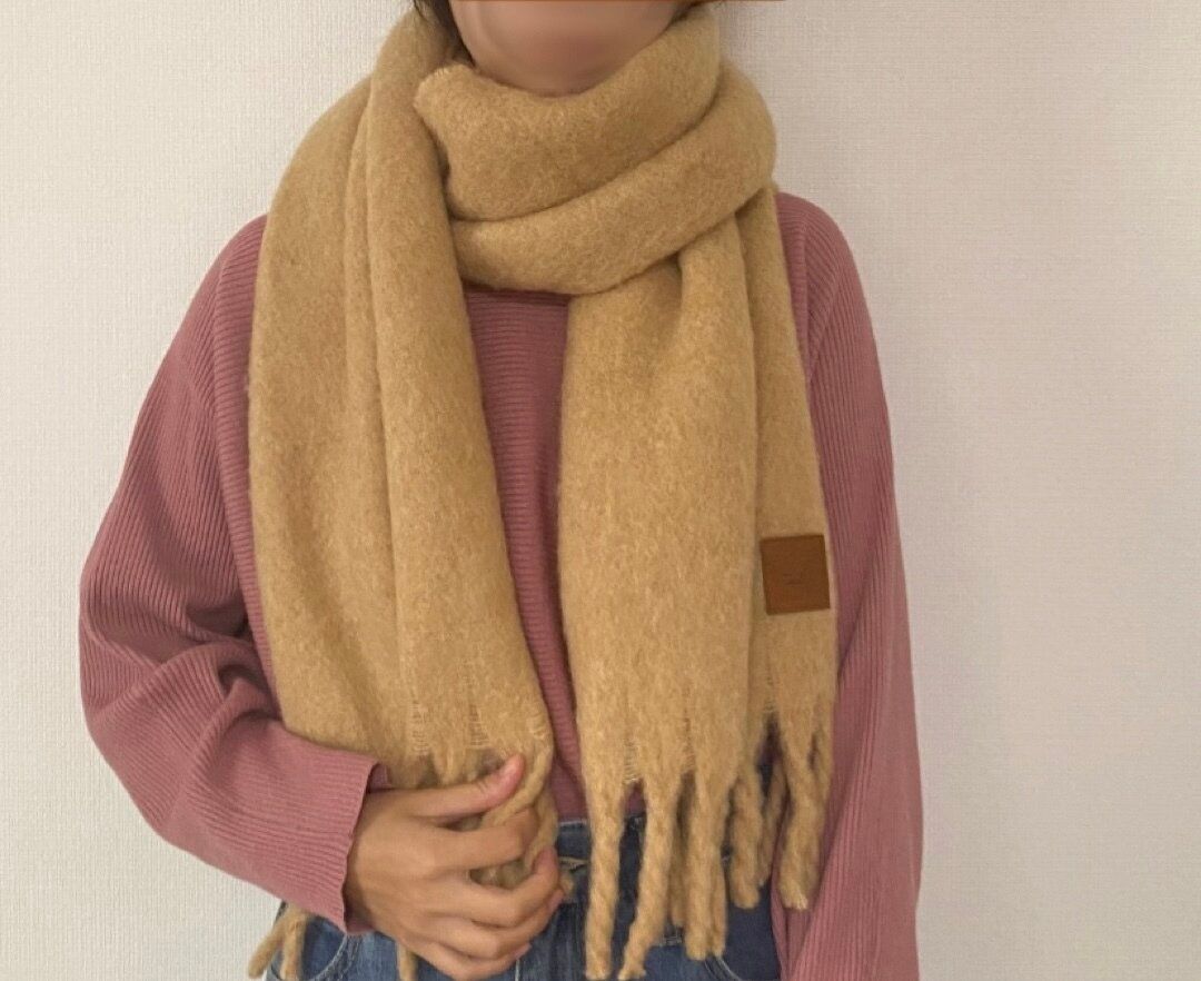 首に巻いてもボリュームがあってとても暖かく、これから訪れる本格的な冬の寒さにも対応できるマフラーだと感じました。