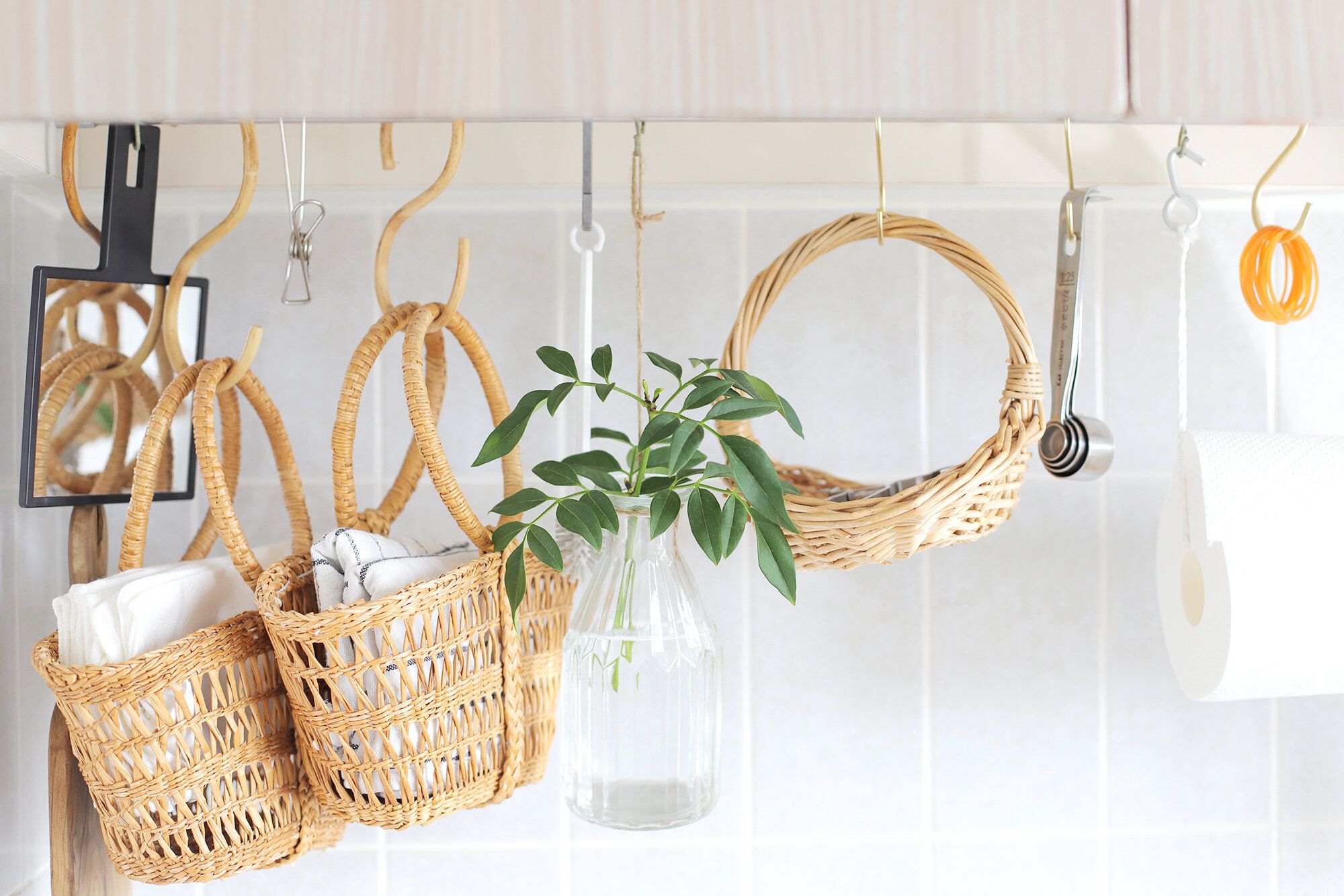 カゴを利用したり、S字フックを利用してもいい。