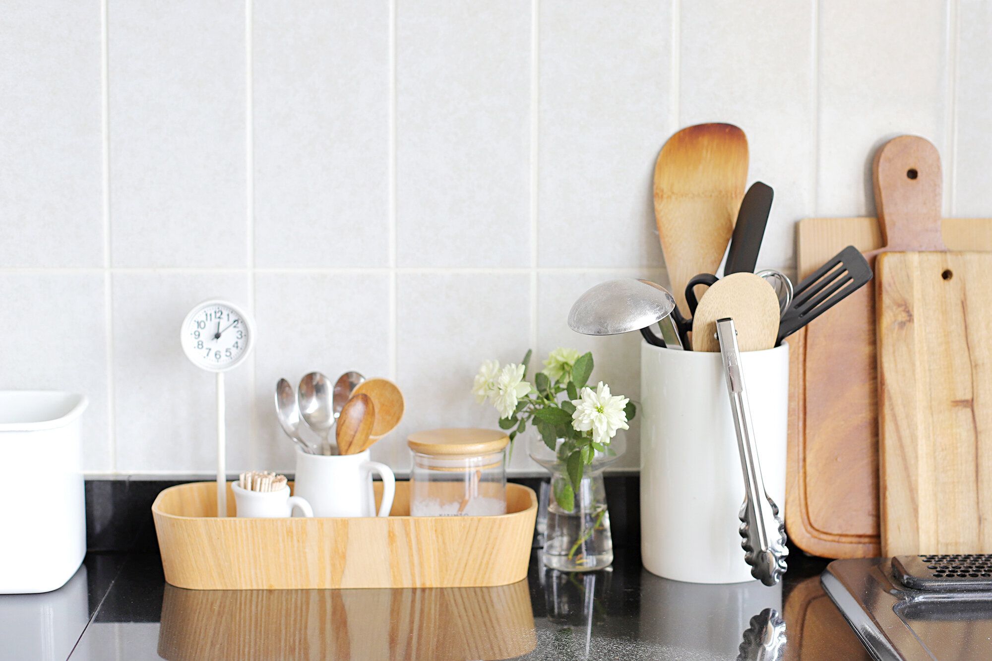 料理の際に毎回使うハサミやヘラ、トングなどの調理ツール、お鍋だって出しっぱなしでもOKです。
